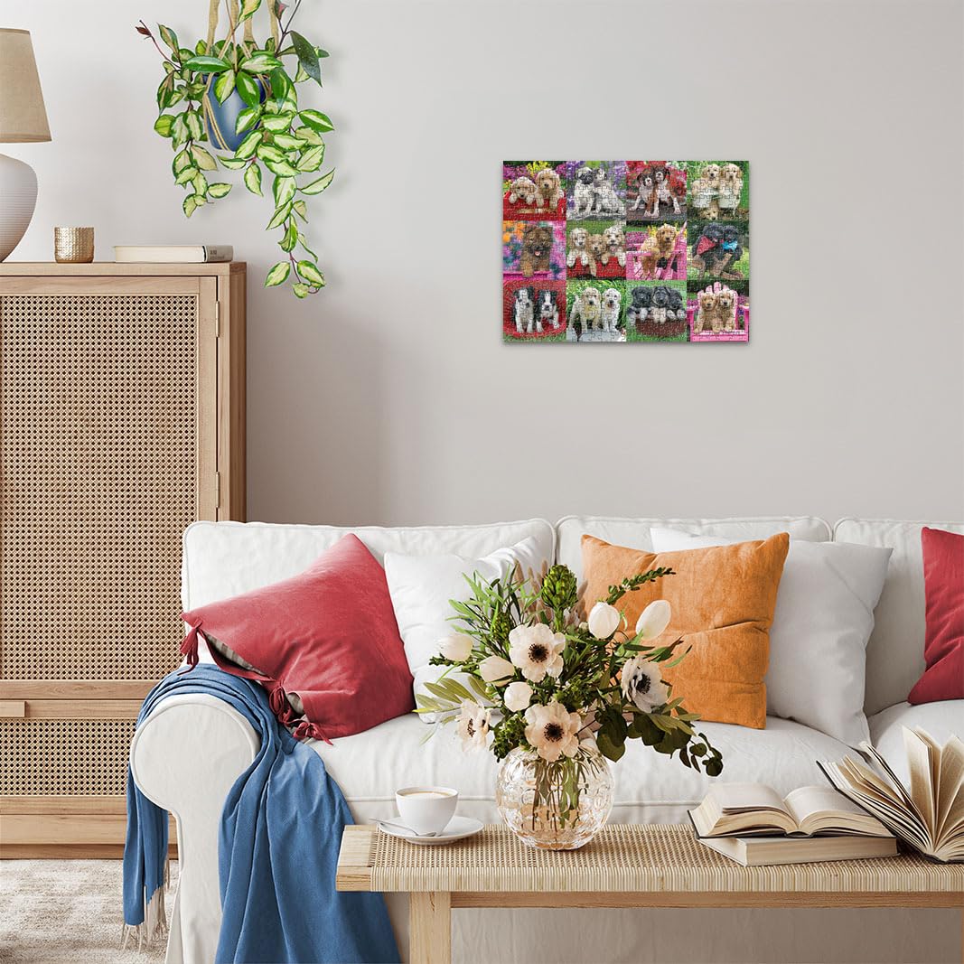 Details: Look! It’s just what you need to melt your heart and forget your worries — a dozen snapshots of adorable doggies in our fun “Puppy Pals” puzzle! Ravensburger has been making the world's finest jigsaw puzzles for over 130 years in Germany. Ravensburger puzzles for adults are made to fit precisely - no matter how large or small the puzzle pieces. All of our jigsaw puzzles are precision-made so that every piece fits perfectly, without frustration. Best of all, every single piece in this puzzle is unique, no duplicates, for the perfect interlocking fit. We use extra thick, custom-developed European blue board and hand-crafted puzzle die cutting tools to prevent fraying or peeling puzzle pieces and dust. All our puzzles have cleanly separated pieces and our fine linen-structured, museum quality paper provides a glare-free puzzle image. We back this up with a lifetime warranty, no questions asked. Simply the world's best puzzles for adults. Start connecting!