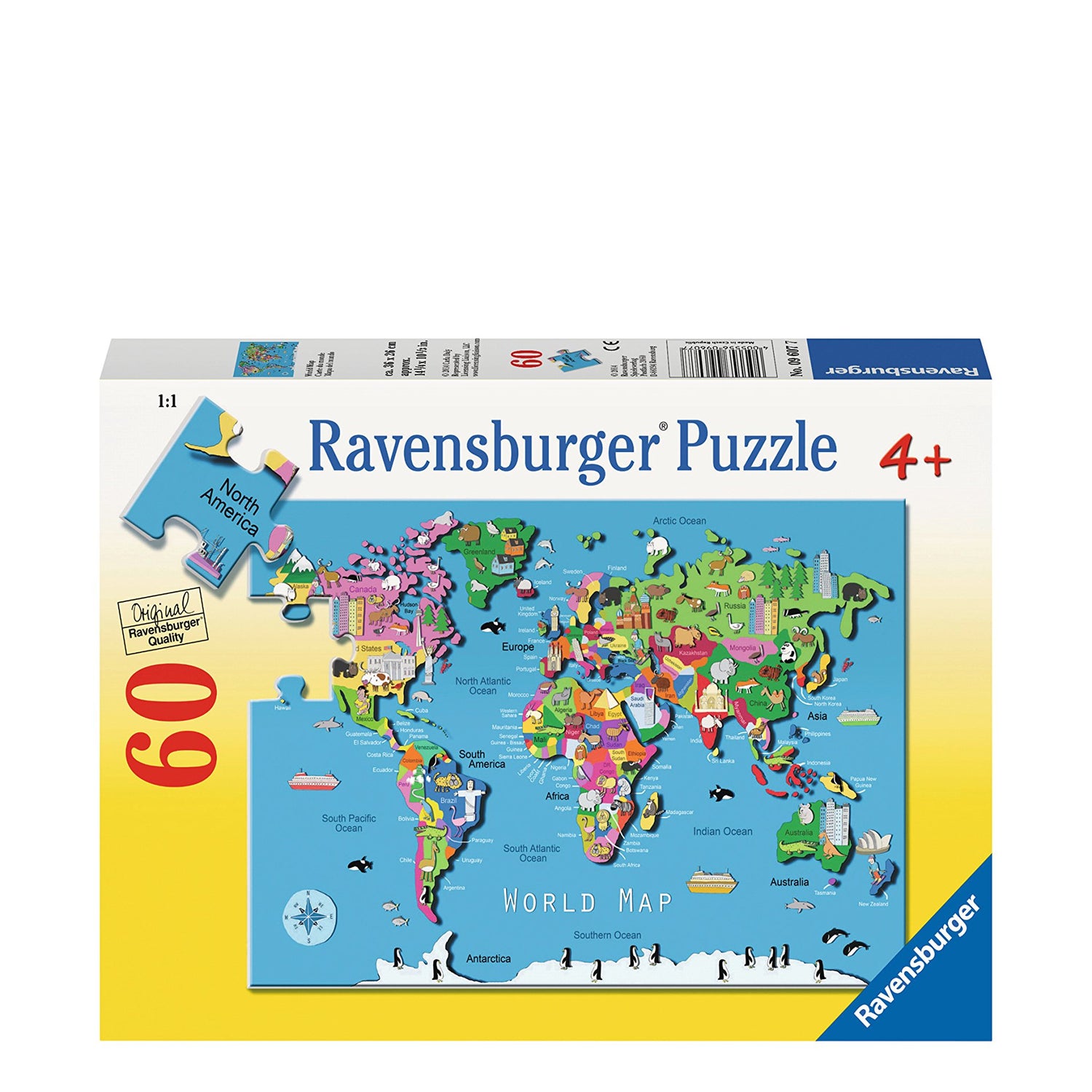 Ravensburger World Map Jigsaw Puzzle | 60 Unique Pieces | Ideal for Kids | Skill-Enhancing Excellent Gift for Birthdays and Holidays