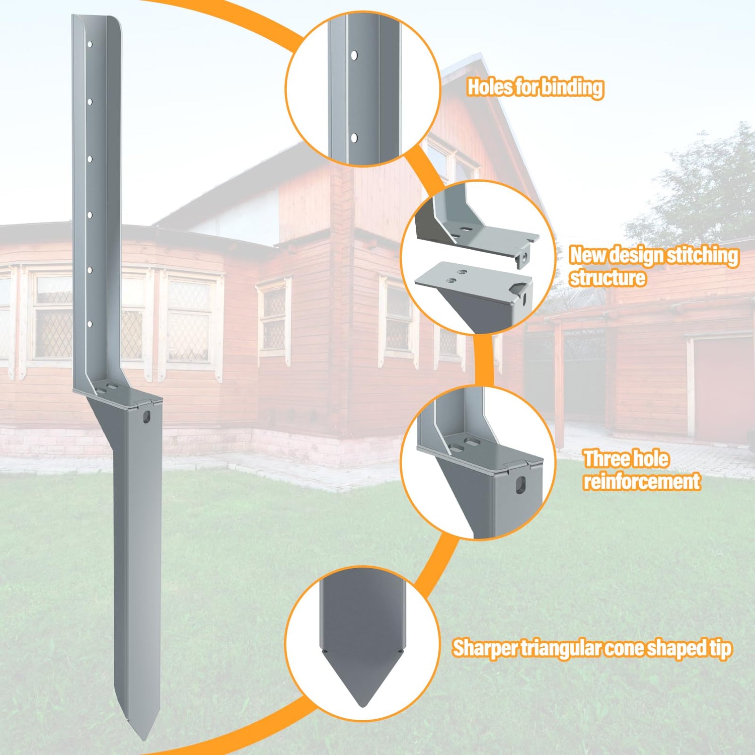 - 【"H" DESIGN】- Fence post repair stakes adopts a "H" design, which provides stronger support than a straight spike. Our fence post repair kit uses a splicing design, which is stronger and save space than other fence post repair stakes on the market.