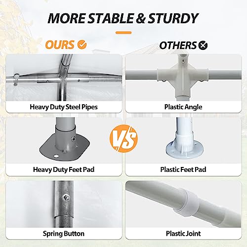 - UPGRADED GALVANIZED FRAME: ((Please do not use in harsh weather, strong wind and clear the snow promptly.)The party tent for outdoor is made of premium powder coated galvanized steel that is rustproof, built to last and will not deform easily, making it perfect for outdoor use.