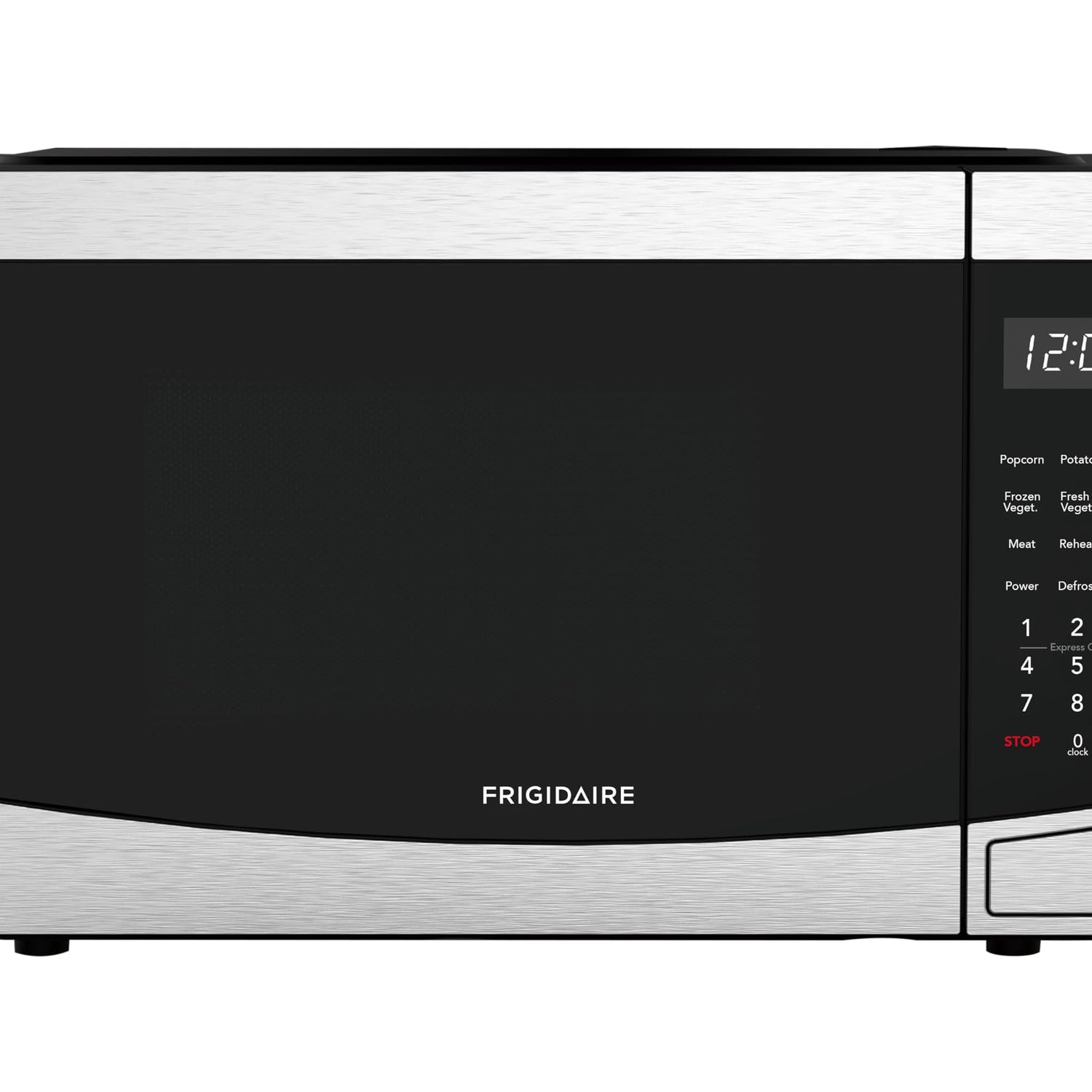 Details: 21" 1.1 cu.ft. Countertop Microwave by Products. With a 1.1-cubic-foot capacity, this stainless steel microwave oven allows for quick and convenient meal preparation. The unit's one-touch auto-cook menu takes the guesswork out of cooking popularly microwaved foods including popcorn, baked potatoes, pizza, beverages, and frozen dinners, while its reheat button makes it easy to warm food items back up again. The microwave's soft-touch electronic control panel also comes with cook-by-weight and defrost-by-weight options, speed defrost that alternates between defrost and stand times for efficient results, a start/stop button, and a reset button to clear all previous settings. With a sleek stainless steel finish, this microwave will look perfect in any kitchen, office or dorm.