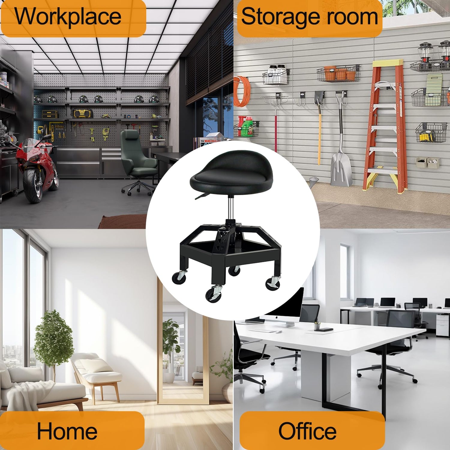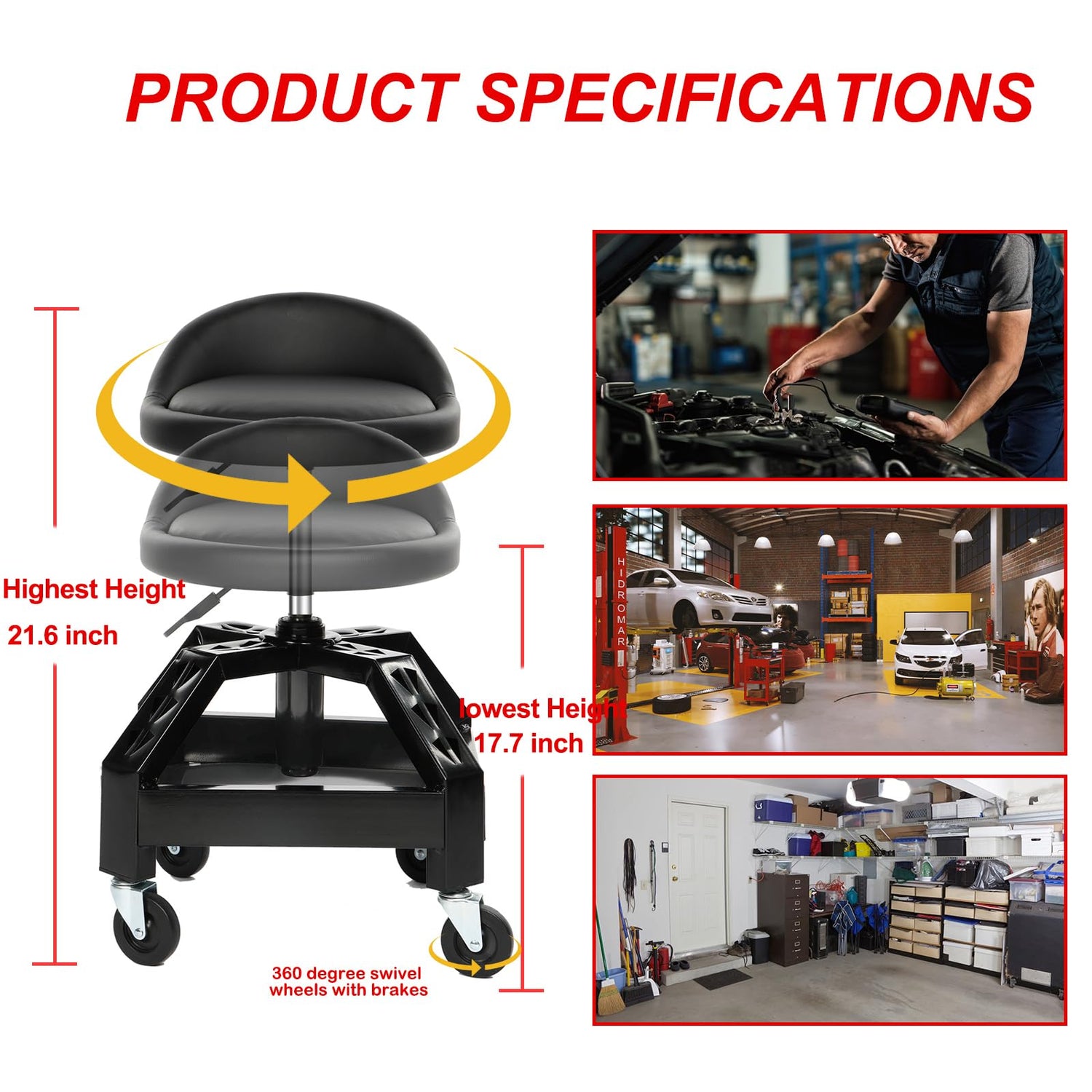 • 【DURABLE & STURDY】Rolling garage stool is made of a steel frame structure that provides durability and is specifically designed to cope with pressure. It can easily support 350 lbs, and this mechanical roller seat will be durable no matter what environment you work in.