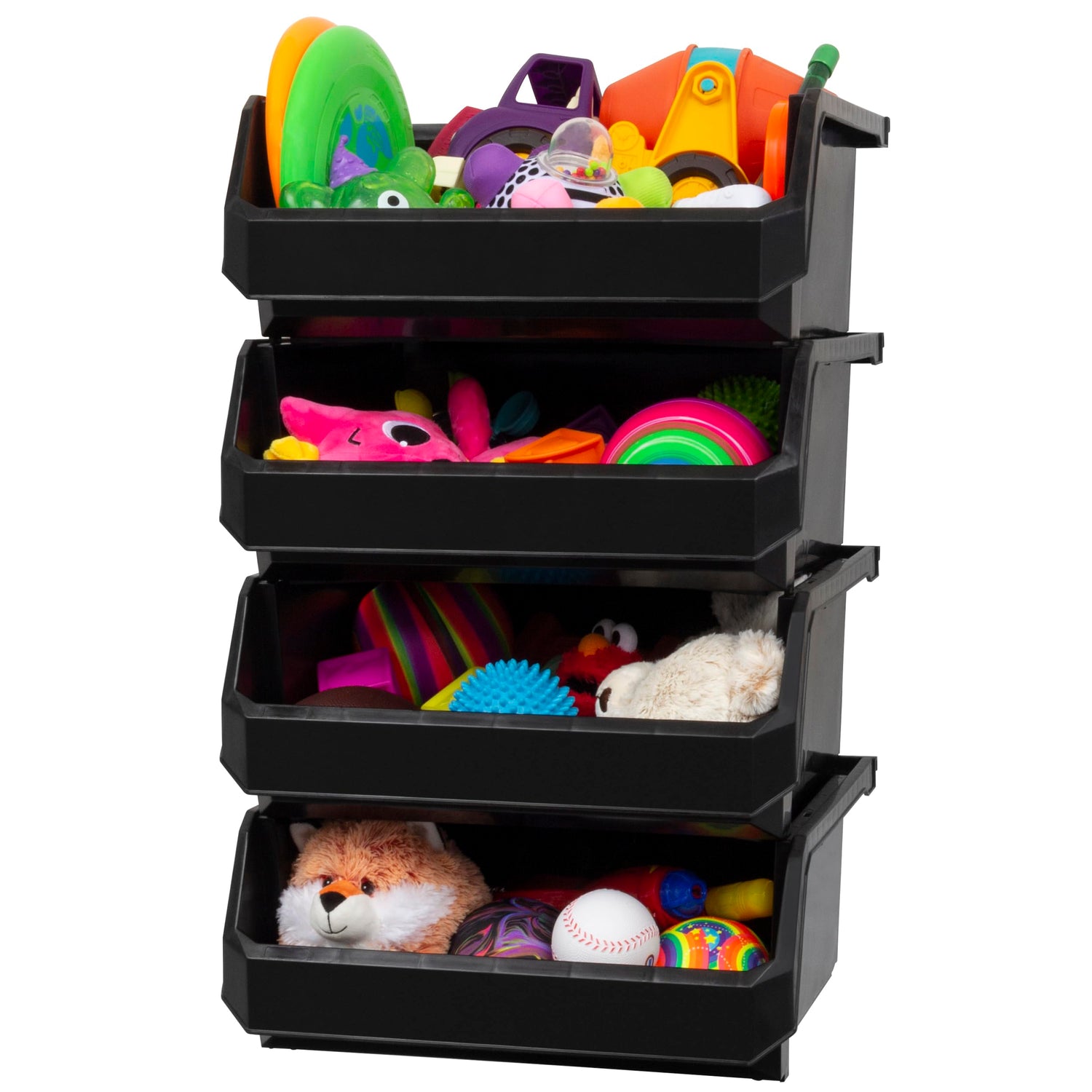 ReadySpace Plastic Containers for Organizing and Storage Bins for Closet, Kitchen, Office, Garage or Pantry Organization, Stackable Bins, Extra Large (14.8" x 16.5" x 7"), 4-Pack, Black