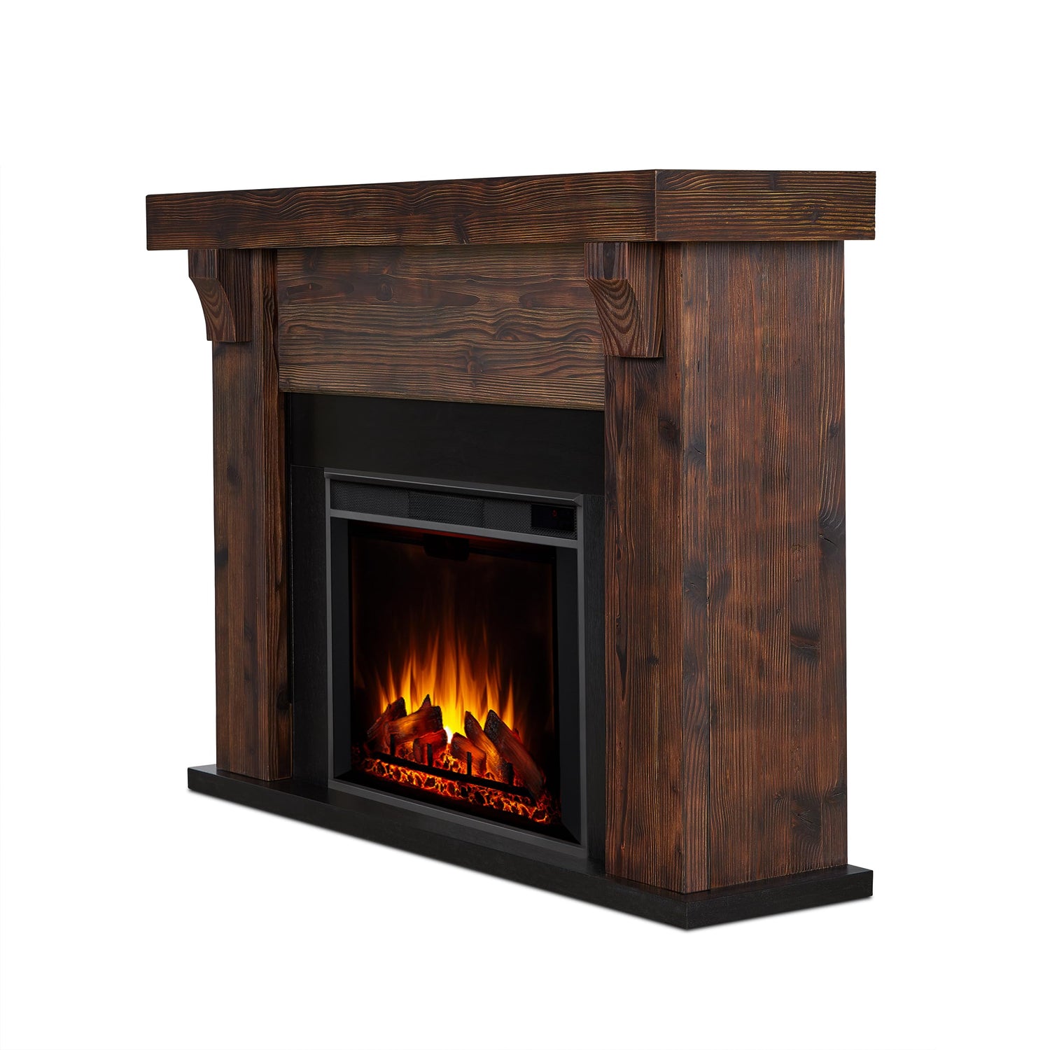 Details: The Gunnison Electric Fireplace has a rustic, crafted look with a generous mantel and a rich barnwood finish. The columns on the side of this fireplace are hinge-mounted and open to reveal hidden storage. Exclusively designed, the Vivid Flame Grand Electric Firebox is 30% larger than our standard firebox and mimics the look of a real fire, but does not require a chimney or vents. Features include infrared LED technology, six thermostat settings and dynamic glowing embers. Available in a chestnut barnwood finish.