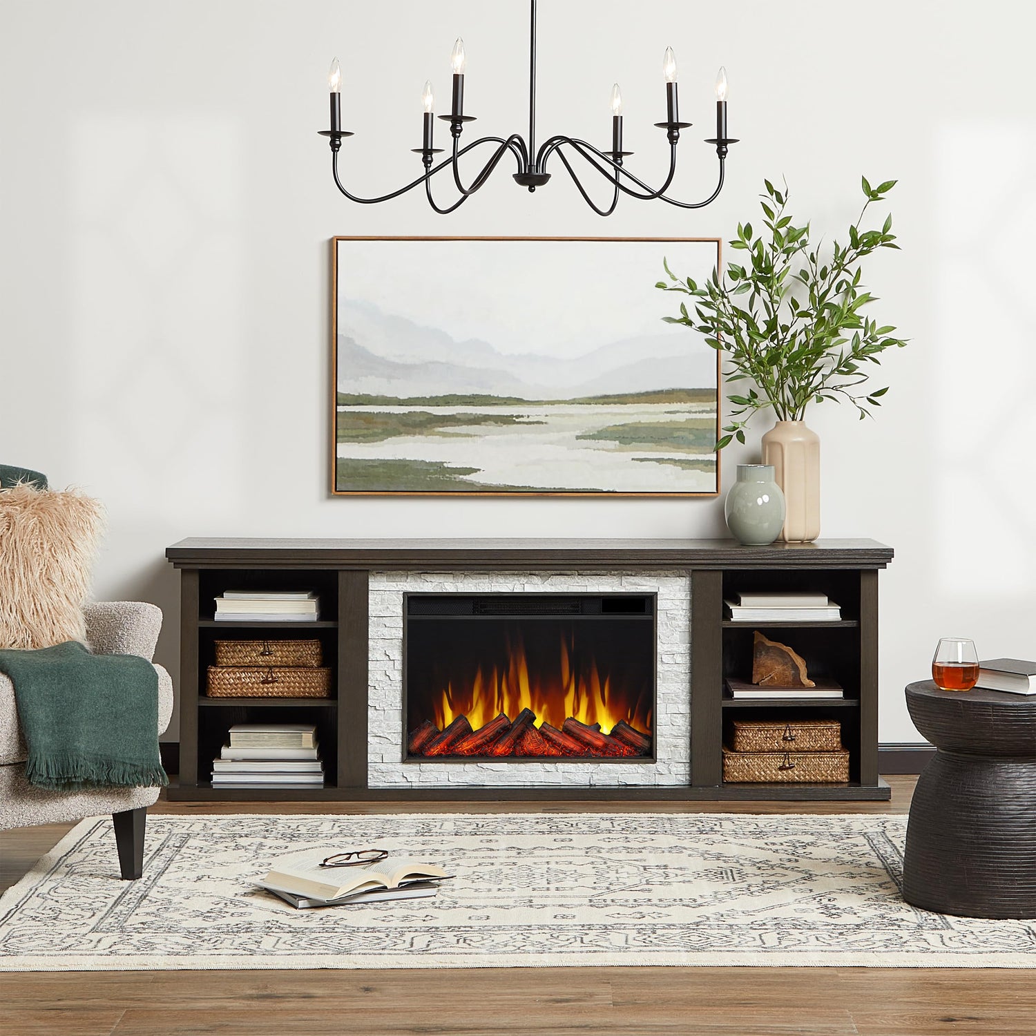 - INCLUDES: TV Stand, electric firebox, remote control, 6 foot power cord with lay-flat plug, one year limited warranty. Assembly required.