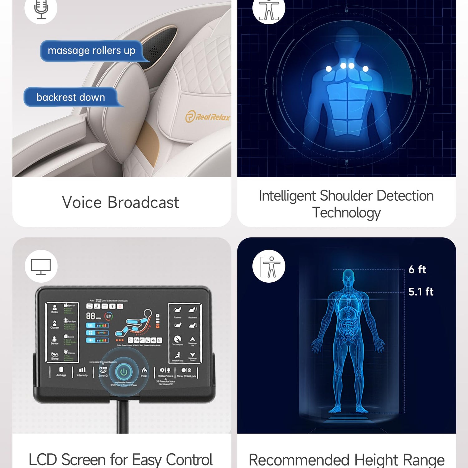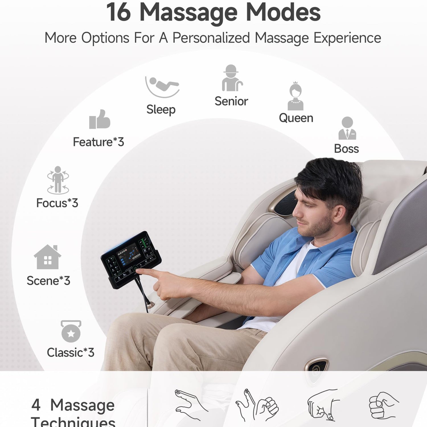 - ๐ ๐ฎ๐ฅ๐ฅ ๐๐จ๐๐ฒ ๐๐๐ฌ๐ฌ๐๐ ๐ ๐๐ก๐๐ข๐ซ ๐ฐ๐ข๐ญ๐ก ๐๐ฎ๐ฌ๐ญ๐จ๐ฆ ๐๐ฉ๐ญ๐ข๐จ๐ง๐ฌ - This full body massage chair features 16 auto modes and 4 massage techniques with 3 intensity levels. From gentle to deep-tissue, this real relax massage chair delivers tailored comfort, making it perfect for an at-home spa experience