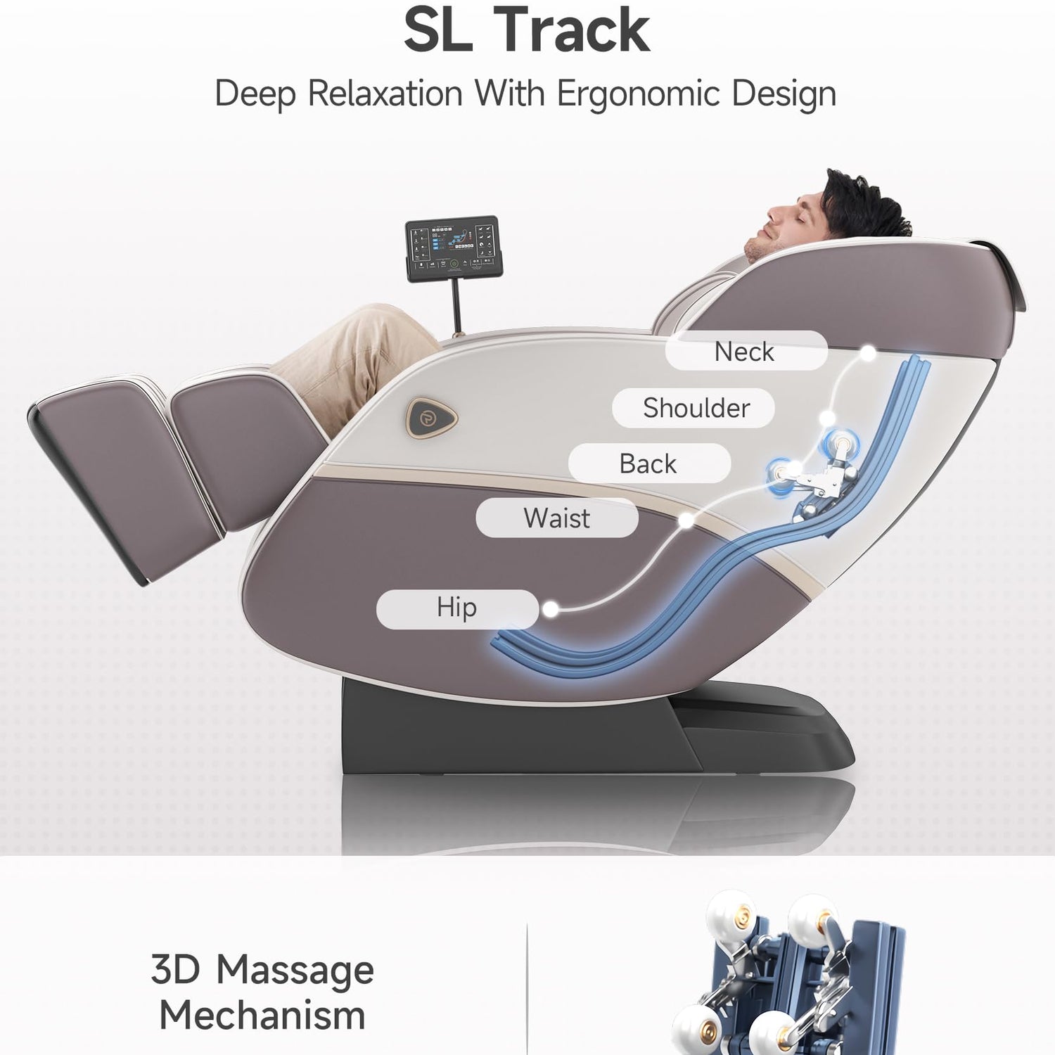 - ๐๐-๐๐ซ๐๐๐ค ๐๐๐ฌ๐ฌ๐๐ ๐ ๐๐ก๐๐ข๐ซ ๐๐จ๐ซ ๐ ๐ฎ๐ฅ๐ฅ ๐๐จ๐๐ฒ - The SL-Track in this massage chair glides smoothly from neck to hips, contouring to the body. Perfect for full-body or fixed-point sessions, this massager chair for full body ensures precise roller movements for tailored relief and ultimate relaxation