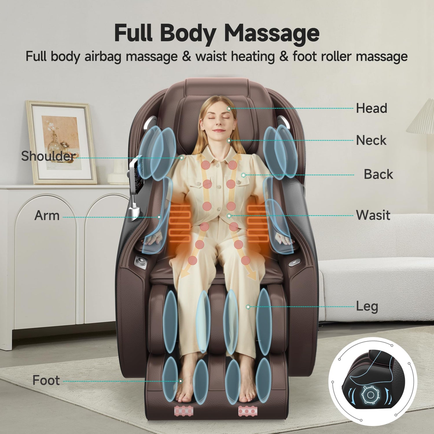 Real Relax Massage Chair Favor-06, Full Body Zero Gravity SL-Track Shiatsu Massage Recliner Chair with APP Control, Brown