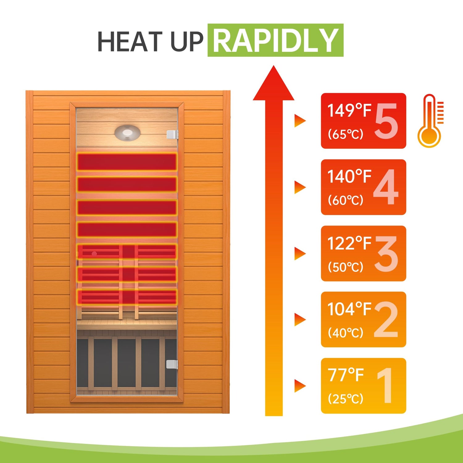 - Heat up quickly with 5 effective carbon heating panels, which only take 15-25 minutes to preheat. The temperature control range is from 77 to 149 degrees Fahrenheit (25-65 degrees Celsius).