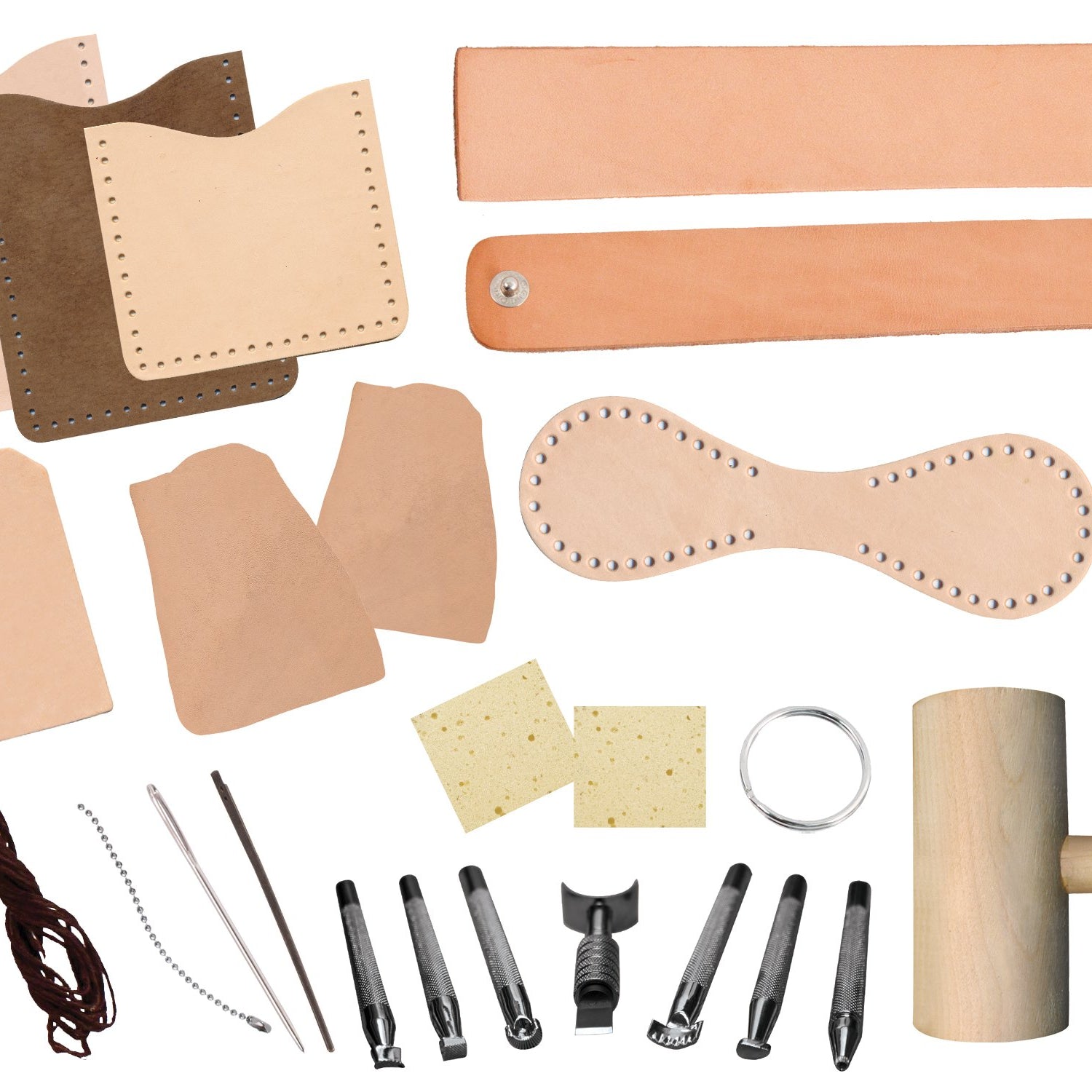 Realeather Basic Leather Craft Starter Kit - Basic Tools and Leather to Make a Key Fob, Bag Tag, Wristband, Cell Phone and Card Sleeve