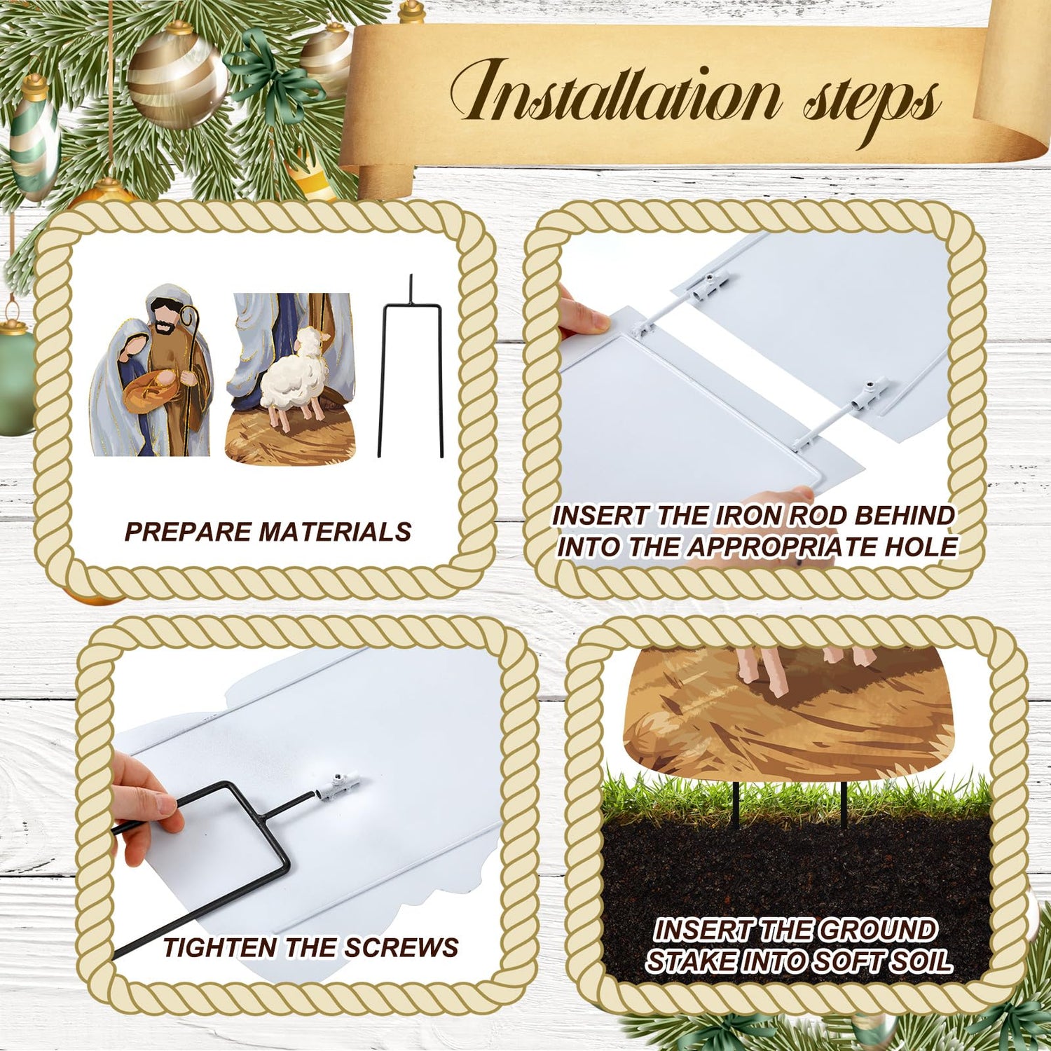 - Package Quantity: this Christmas courtyard decoration includes two metal plates depicting the scene of the birth of Jesus and a metal stake; This nativity scene enhance the festive appeal; Let you feel the deep Christmas atmosphere during this special festival