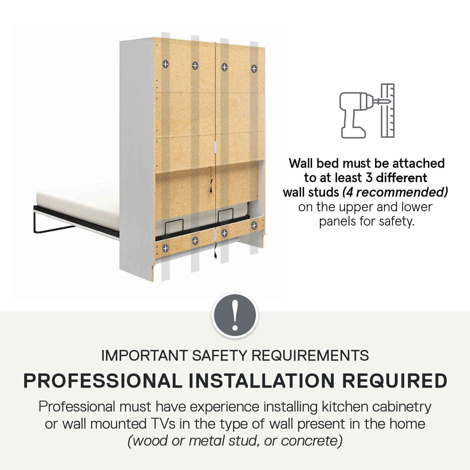 - MATTRESS REQUIREMENTS: The Wall Bed is designed to accommodate a Queen Size Mattress of your choice up to 10" thick with a maximum weight of 60 lbs. and a minimum weight of 30 lbs. (mattress not included)