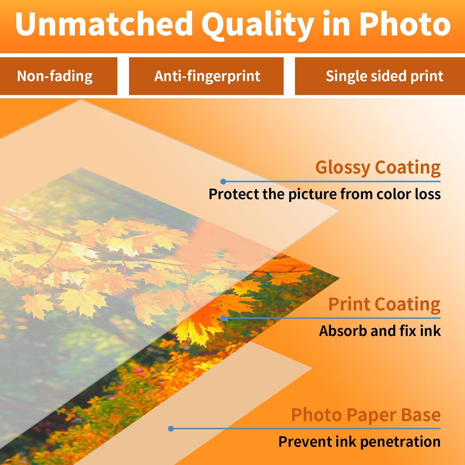 - Glossy Finish: Our glossy photo paper features its a reflective finish, that resists fingerprints and almost eliminates glare, makes every picture more professional and attractive look like a work of art