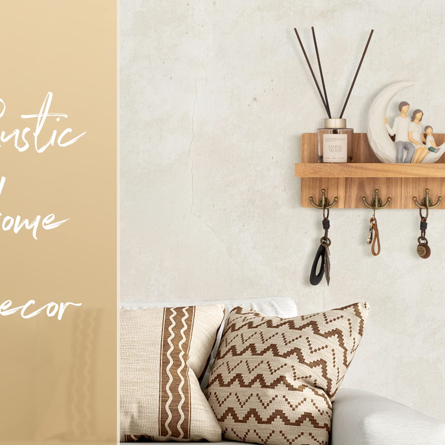Rebee Vision Farmhouse Key Holder for Wall: Decorative Mail Organizer with Shelf and Rustic Mail Holder with 3 Anchor Key Hooks - Retro Home Decor Wall Mount for Entryway, Hallway (Light Brown)