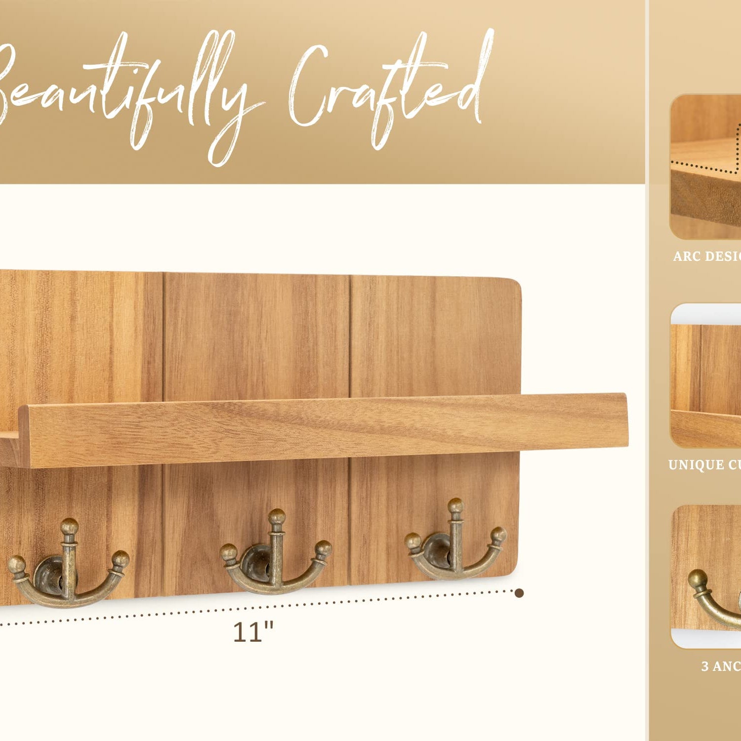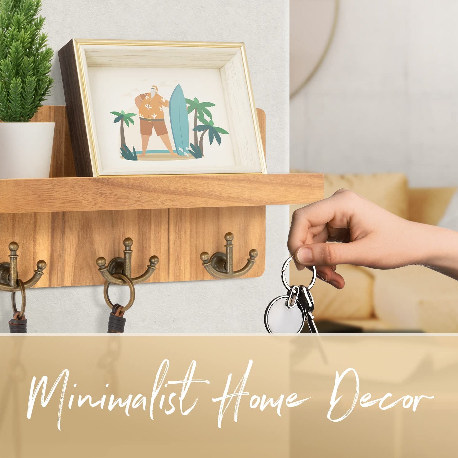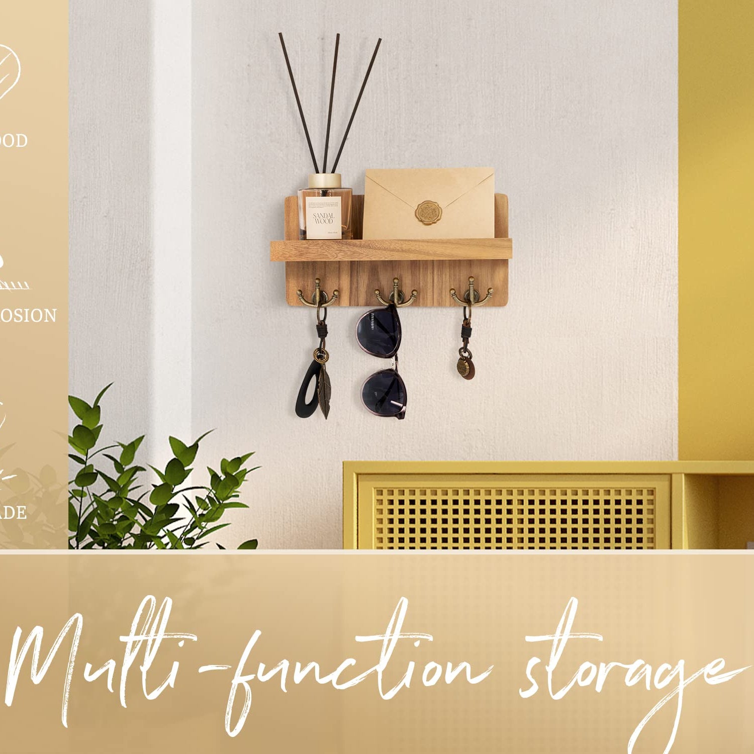 - 【HOUSEHOLD ESSENTIAL KEY HOLDER】Stable shelves and sturdy hooks help keep your entryway organized, make it easy to find what you need on the wall key rack when you're out, you can also display your family photos or some succulents.