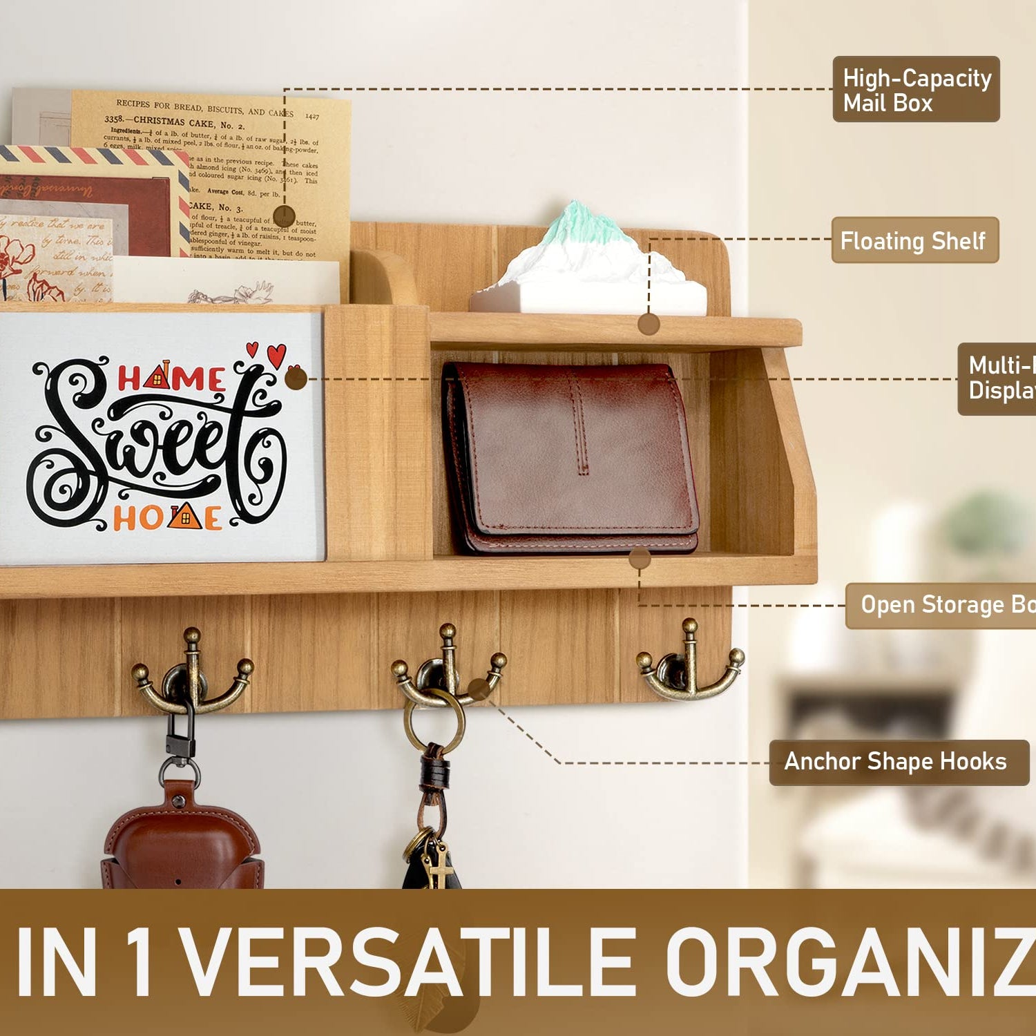 - 【Put Whatever You Want】 The 16inch key holder not only has a large mail box, but also two display stands and 4 unique anchor hooks with 3 prongs each for more storage capacity.