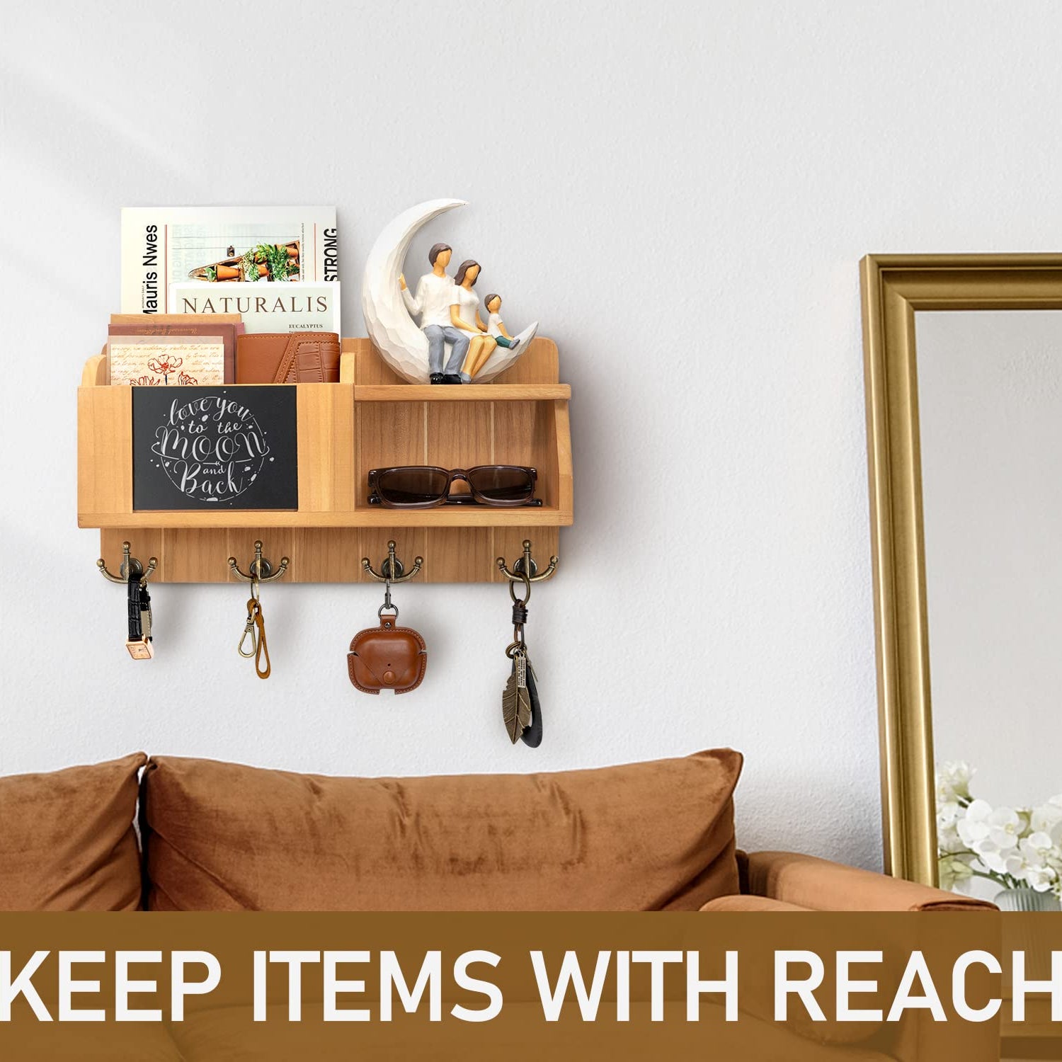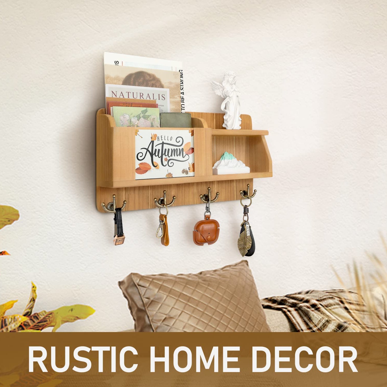 - 【Both Decorative Storage Functions】 Our key and mail racks are made from raw wood, and the bright brown adds a touch of nature to your farmhouse and adds glamour to your rustic home decor.