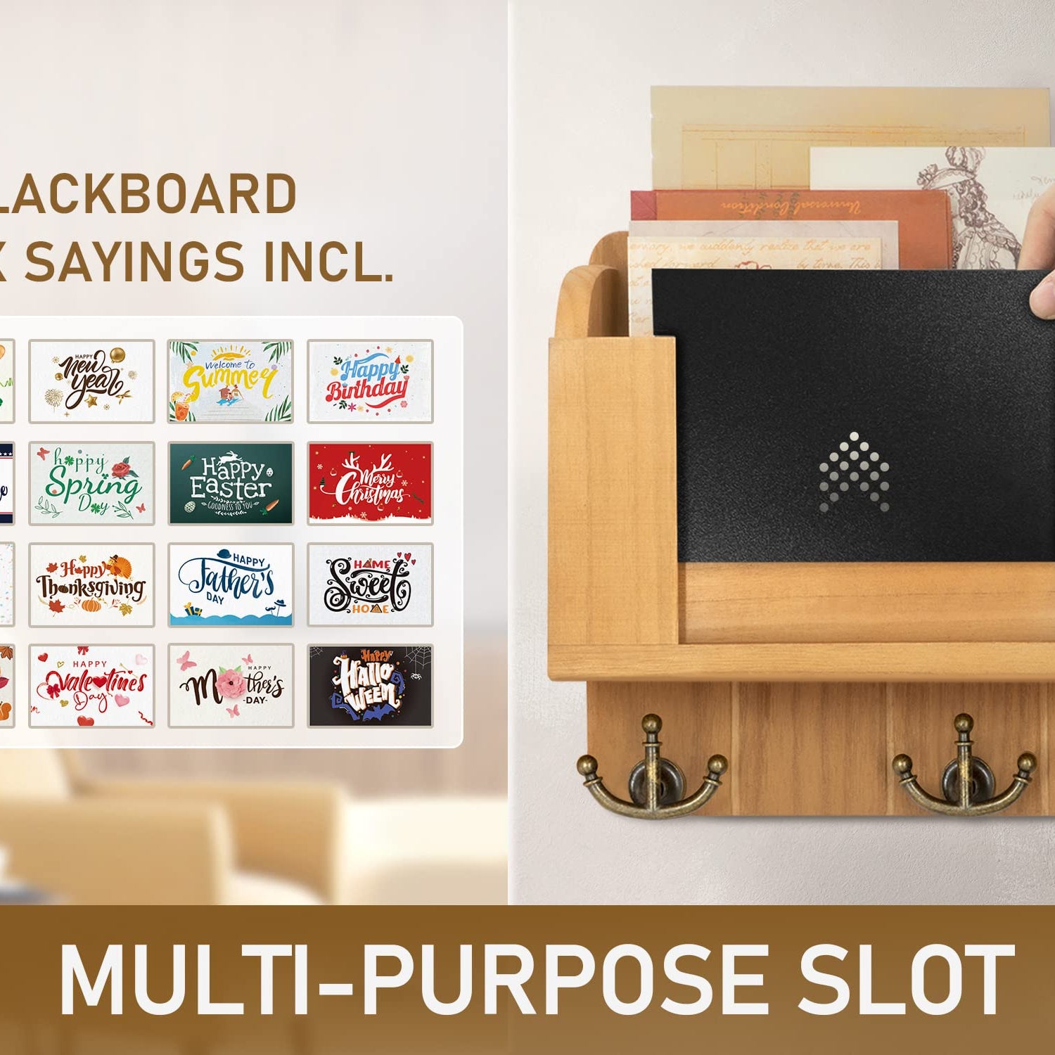 Rebee Vision Farmhouse Key Holder for Wall - Mail Organizer with Chalkboard with 4 Hooks - Rustic Key Hanger for Home Decor