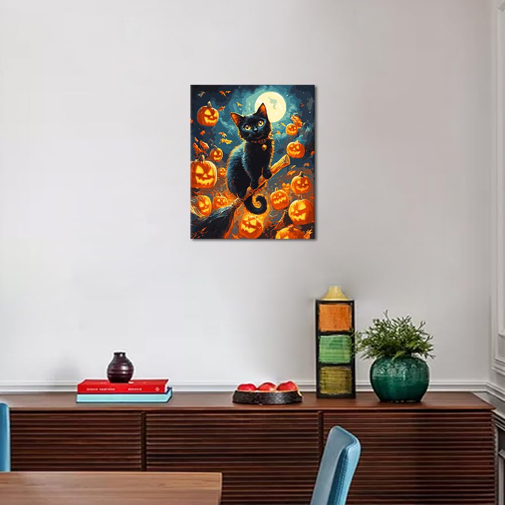 Rebotipy DIY Moon Paint by Numbers Kits Animals Cat Paint by Number on Canvas with Brushes Painting Artwork Kits Halloween Gifts Paint by Number for Adults Beginner Home Wall Decor 16x20 in