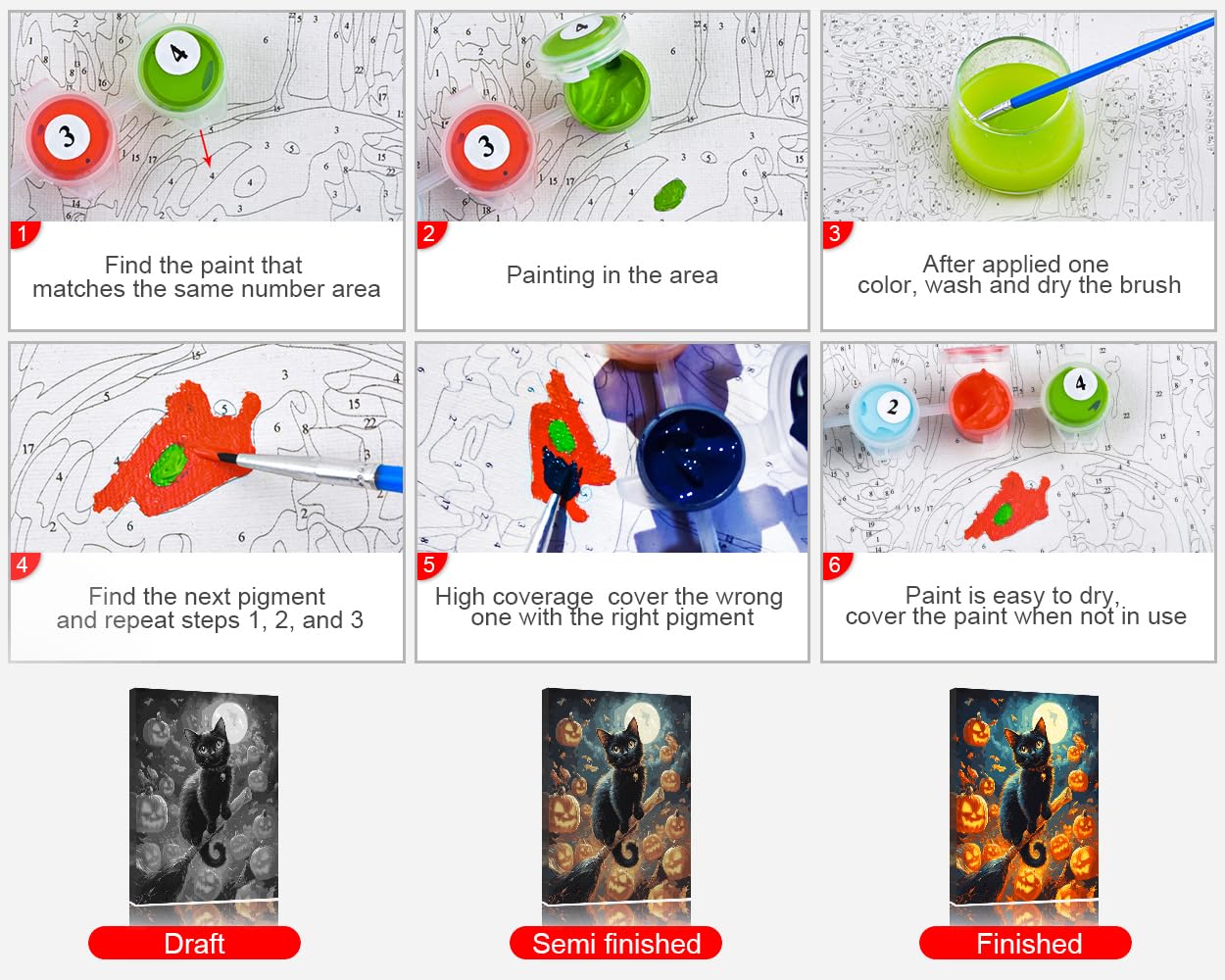 - 【Easy to Paint】We provide a sufficient paint set with high color reproduction and brightness. You just need to match the numbers of the pigment with the figures on the canvas, and then fill in the paint accordingly.