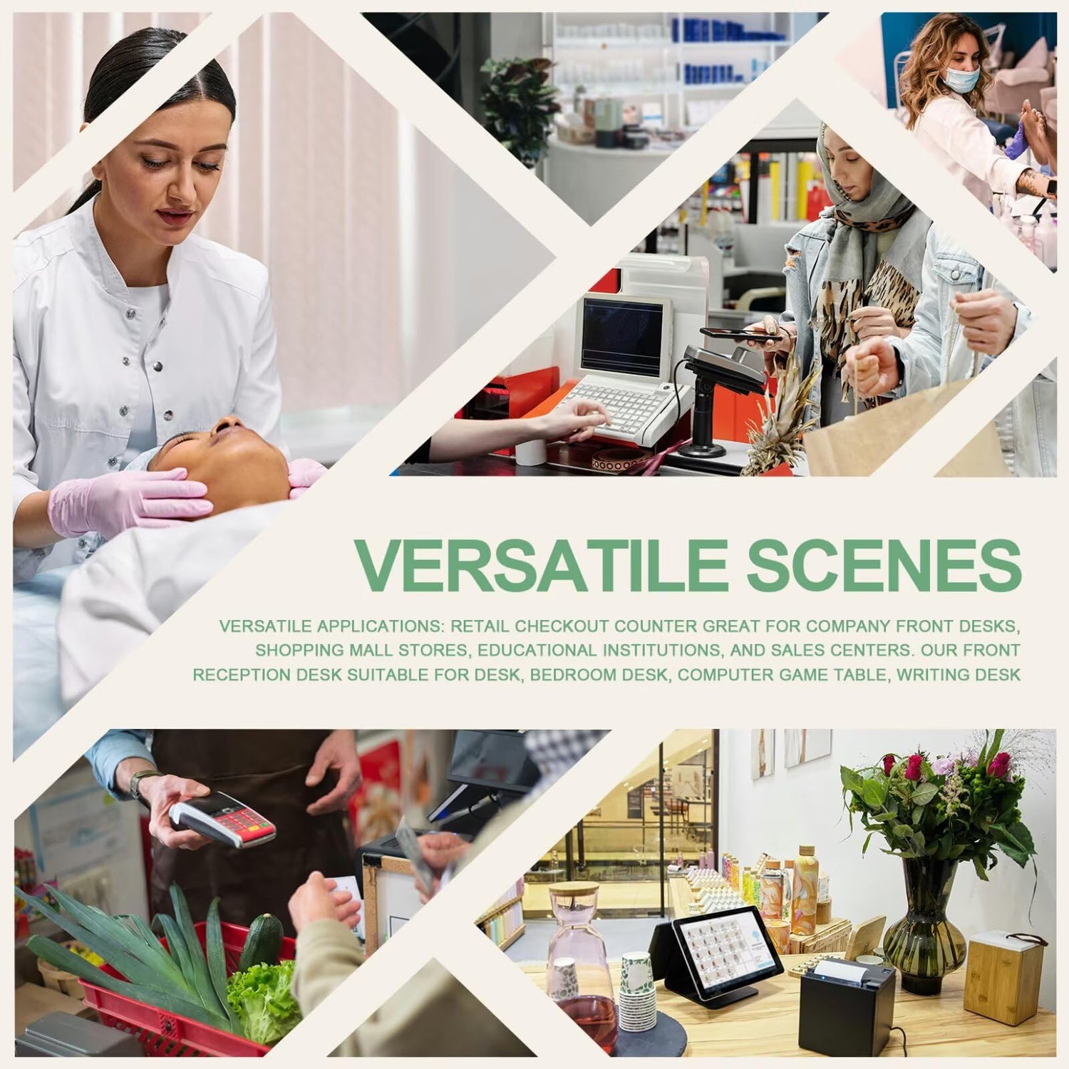 - VERSATILE & STYLISH FOR SETTINGS: Reception room tables reception desk with storage is perfect for a wide range of professional environments, checkout counter from beauty salons and spas to high-end law firms, hotels, and educational institutions.