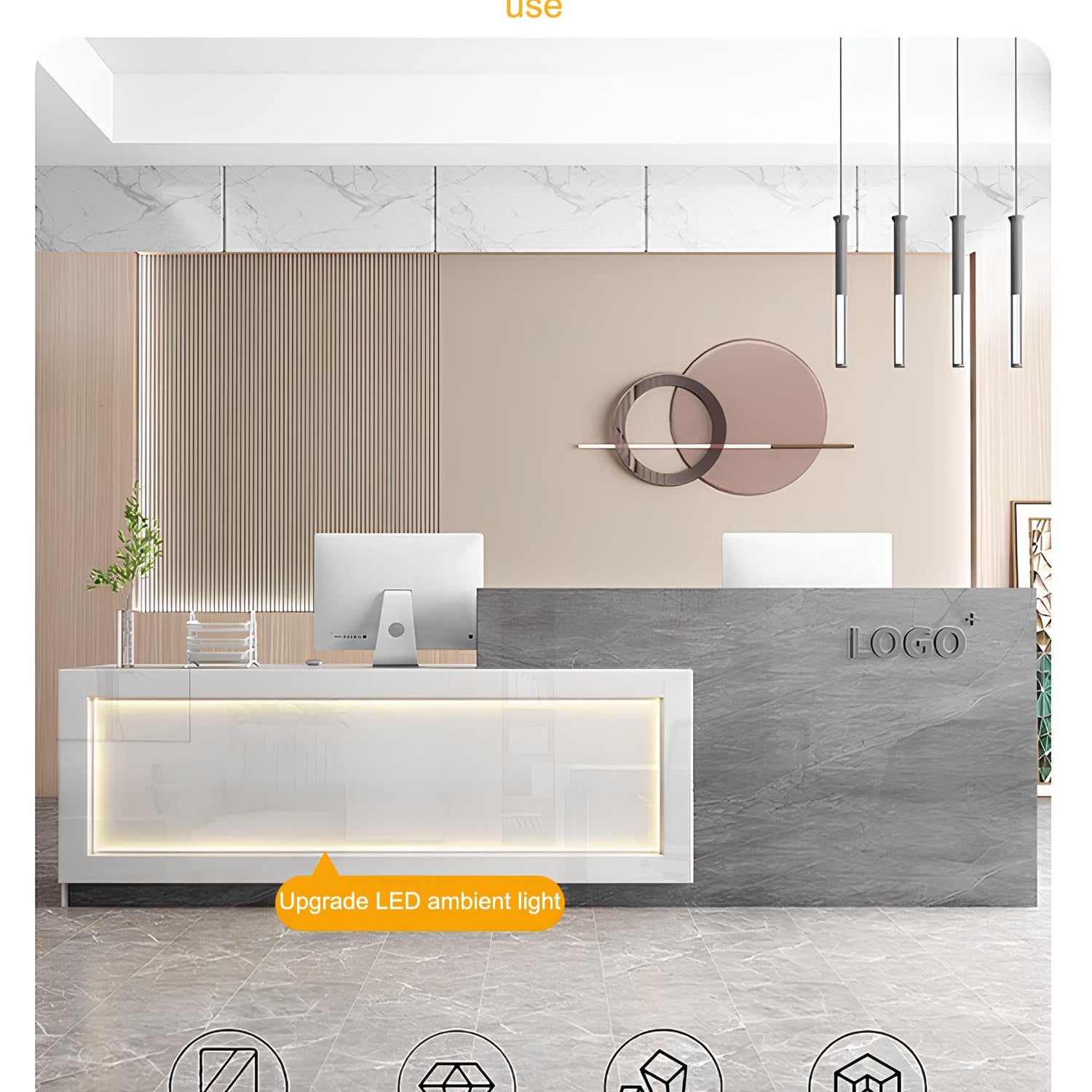 - Durable & Easy to Clean: Made of engineered wood, this modern reception desk is waterproof, scratch-resistant, and easy to maintain—perfect for high-traffic use in retail counters, salons, and offices