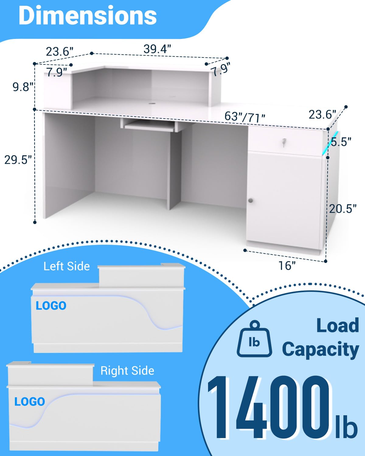 - Spacious & Efficient Layout: Choose between 63" or 71" configurations for a seamless workspace. This reception desk with counter offers a wide linear design that fits flush against walls, maximizes corner usage, and provides ample room for equipment and smooth workflow—ideal as a small reception desk or checkout counter.