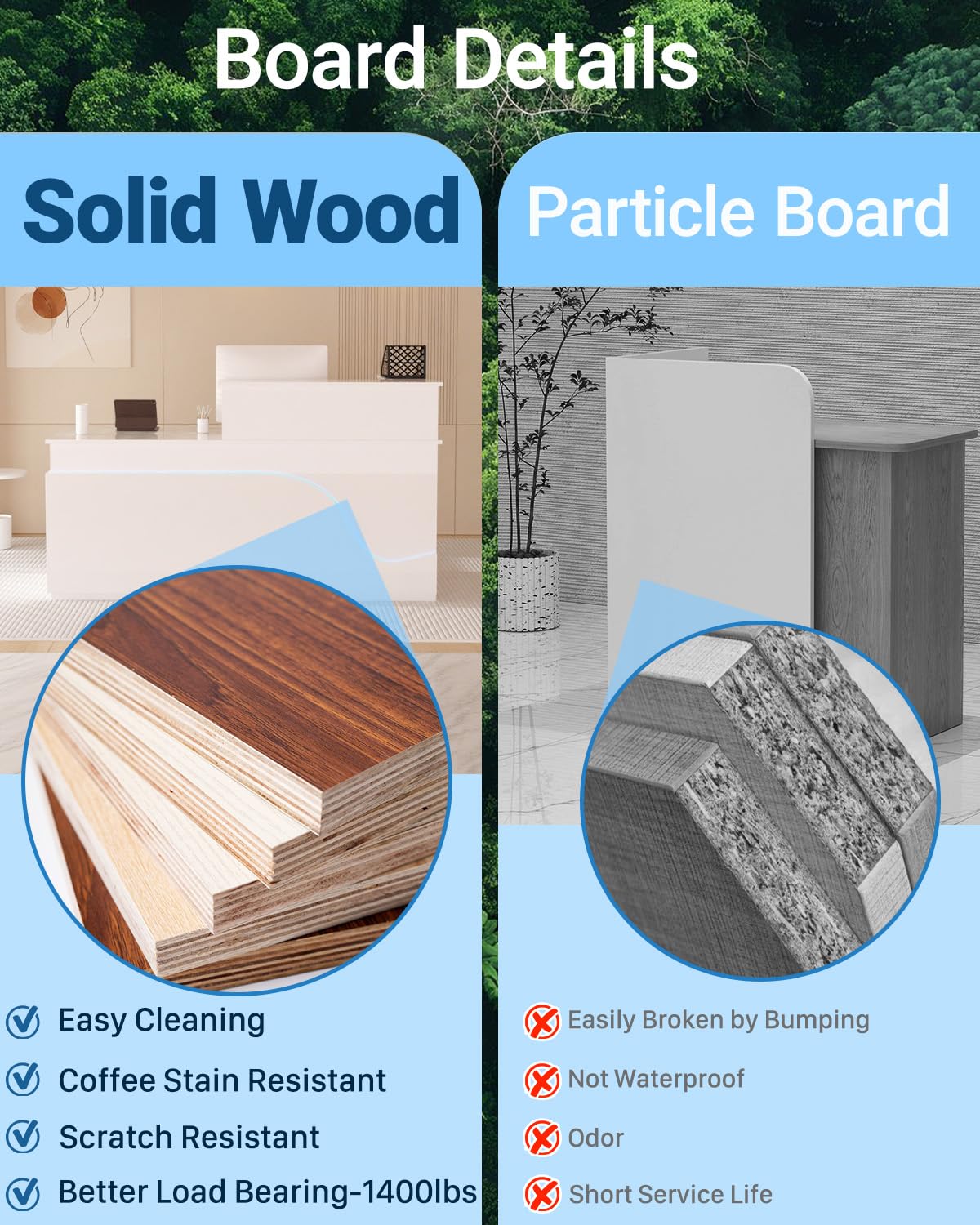 - Durability & Design: Crafted from solid multi-layer wood with a High-Gloss Baked Enamel finish, this counter table resists scratches, moisture, and daily wear. Supporting up to 1400 lbs, it delivers lasting stability as a reliable business desk or receptionist desk for high-traffic environments.