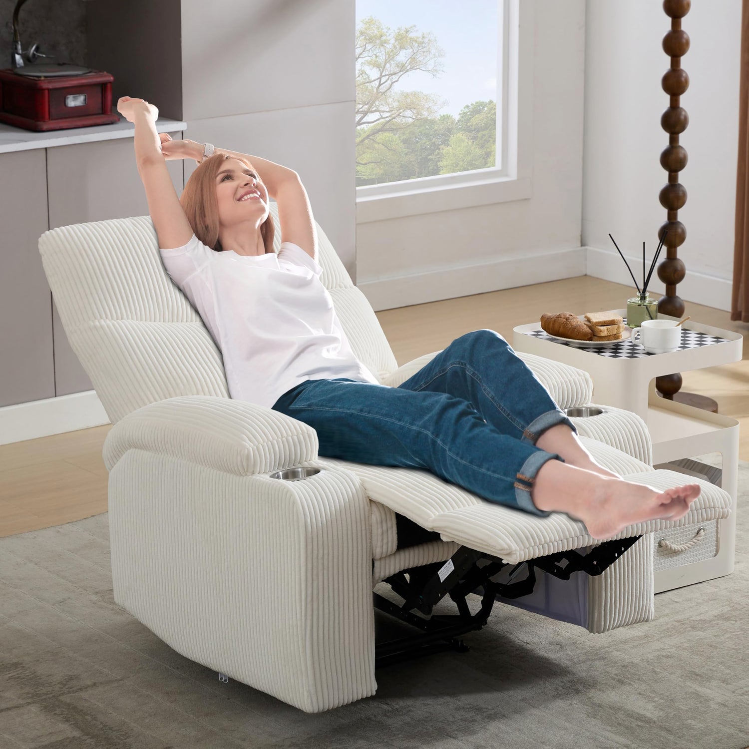 Recliner Chair, Manual Sofa-3 Comfortable Seating Positions, Ideal for Living Room, Office, RV, or Home Theater, Oversized Recliner Chairs for Adults(White)