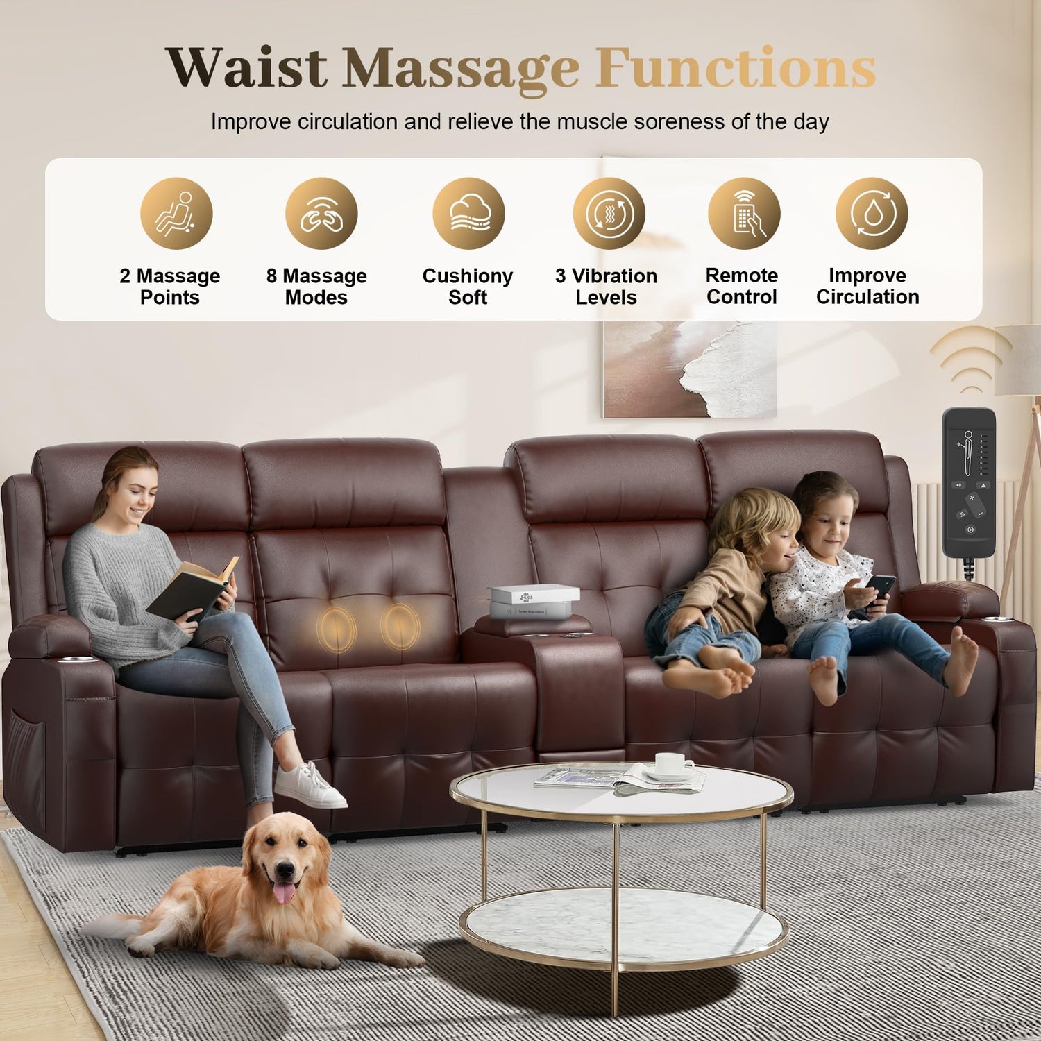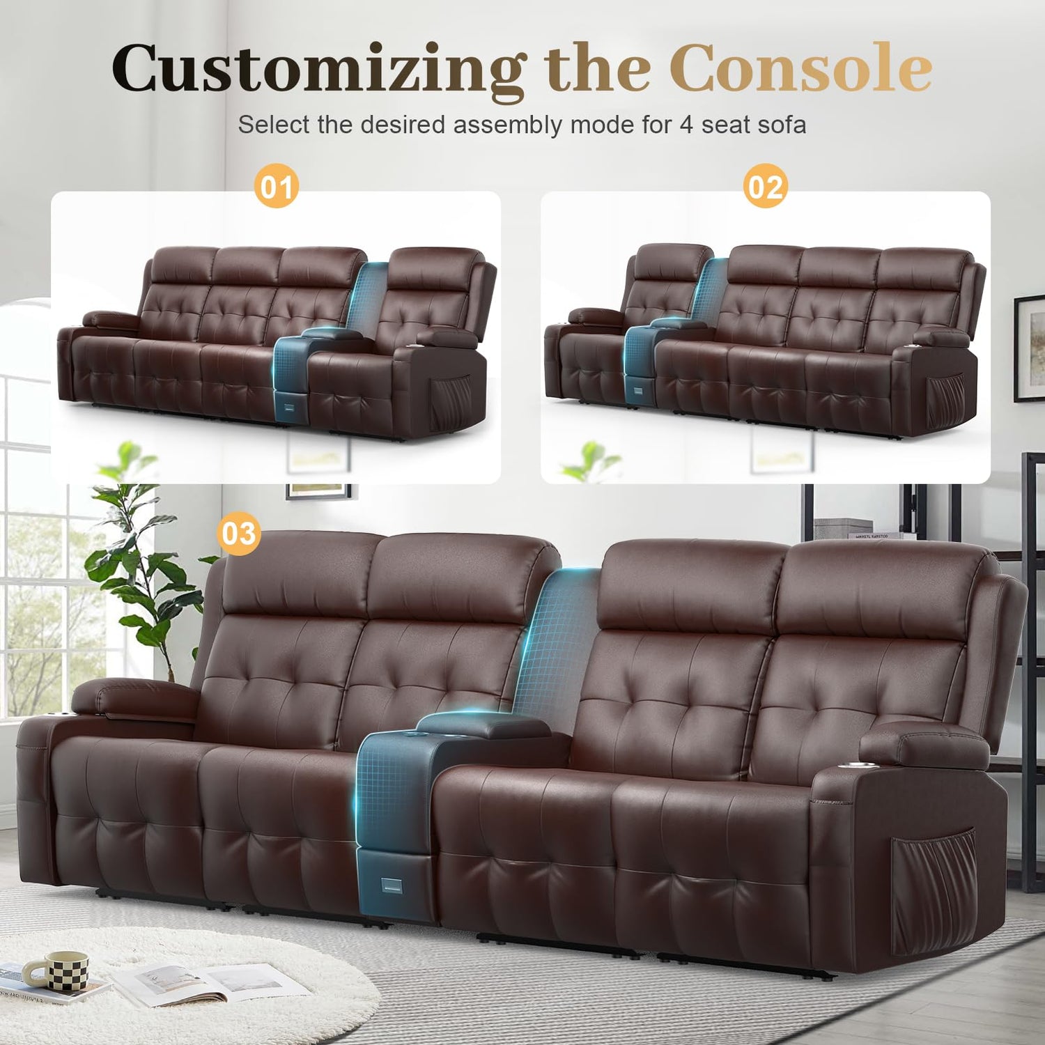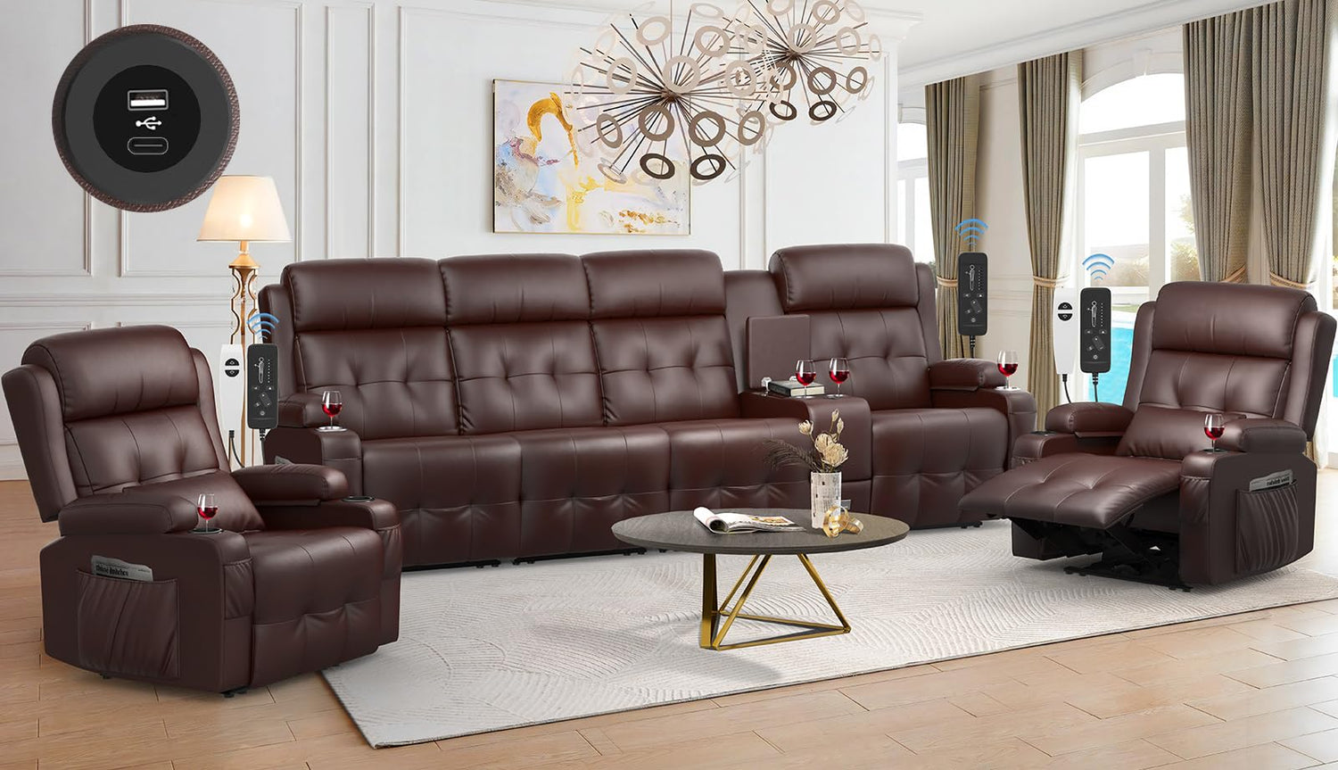 - Charge-on Reclining Sofa (manual reclining): Featuring convenient middle-mounted USB and Type-C ports, your devices stay charged throughout movie nights on the recliner couch. Unlike side-mounted ports, this design keeps cords out of the way, making it easy to access and use the remote without entanglement on the recliner sofa