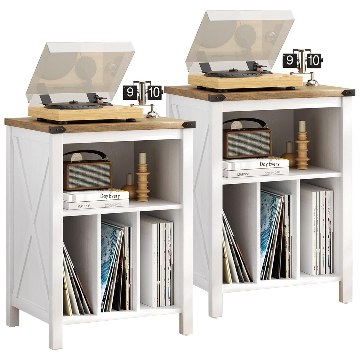 - Farmhouse Style Design: The side of this white record player stand features a classic X-shaped frame design, inspired by the barn doors and vintage furniture of traditional farmhouses. The crossed lines not only enhance the overall load-bearing stability but also, with their simple and powerful geometric forms, infuse the home space with a touch of retro yet modern design sense.