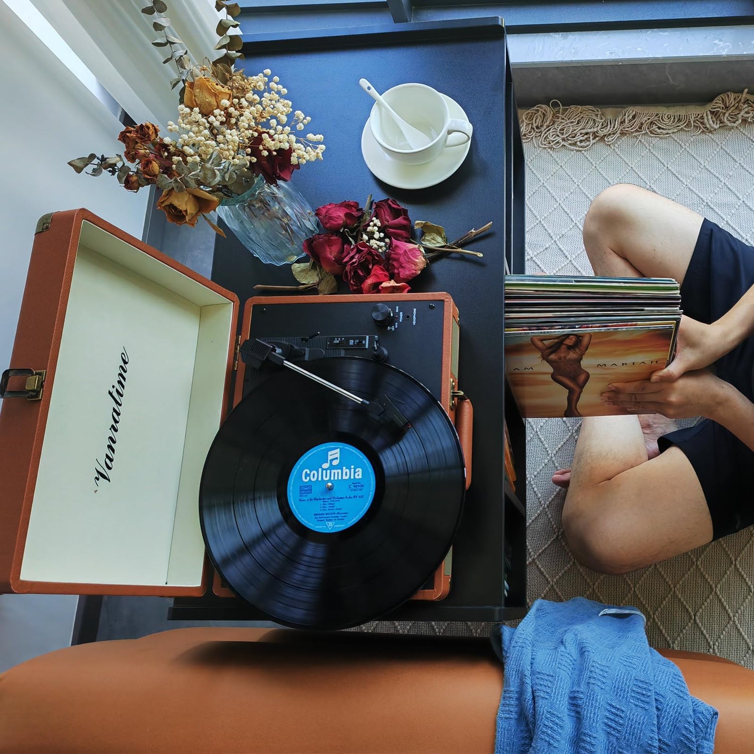 Multifunctional Hub. The generous tabletop effortlessly accommodates most record players, making it a versatile addition to any room. Its tasteful color scheme seamlessly integrates with your home decor, whether it's in your living room, bedroom, or office.