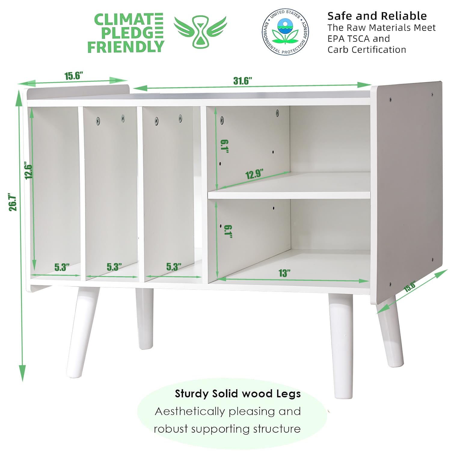 - ♬【Mid-Century Modern Record Player Stand】 This record player stand uses a white natural wood grain design with solid wood decorative legs, It retains the retro wood texture, but without losing the modern pop style. When your record treasures grace the display shelf, a symphony of retro-modern allure engulfs your space. Its organic aesthetics bestow an iconic touch to this mid-century record play stand, a masterpiece perfectly suited for diverse home decor styles.