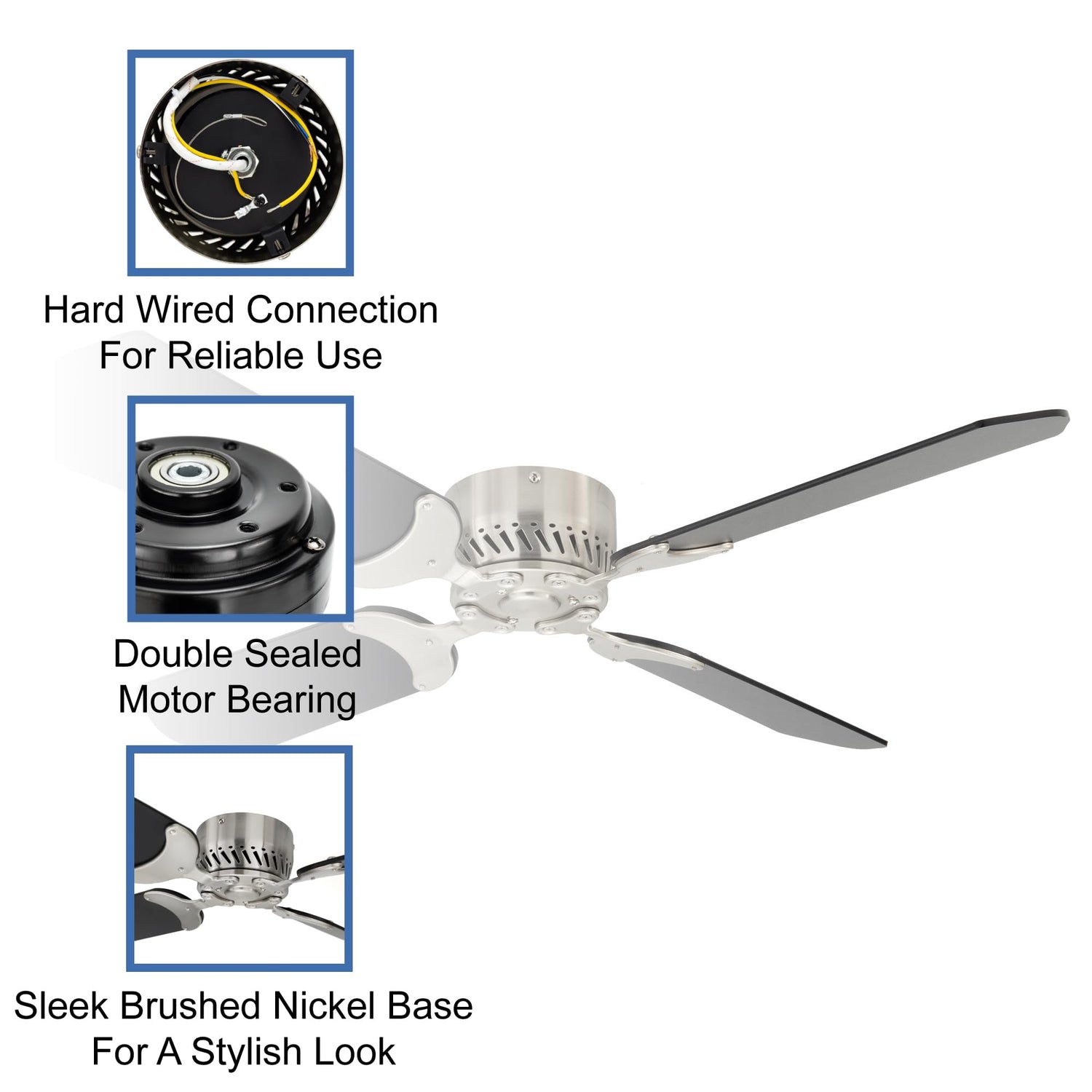 RecPro RV 12V Ceiling Fan | 4-Blade | 4-Speed | Near Silent Operation | Reversing Direction Wall Control (Brushed Nickel: Black Blades, 36")