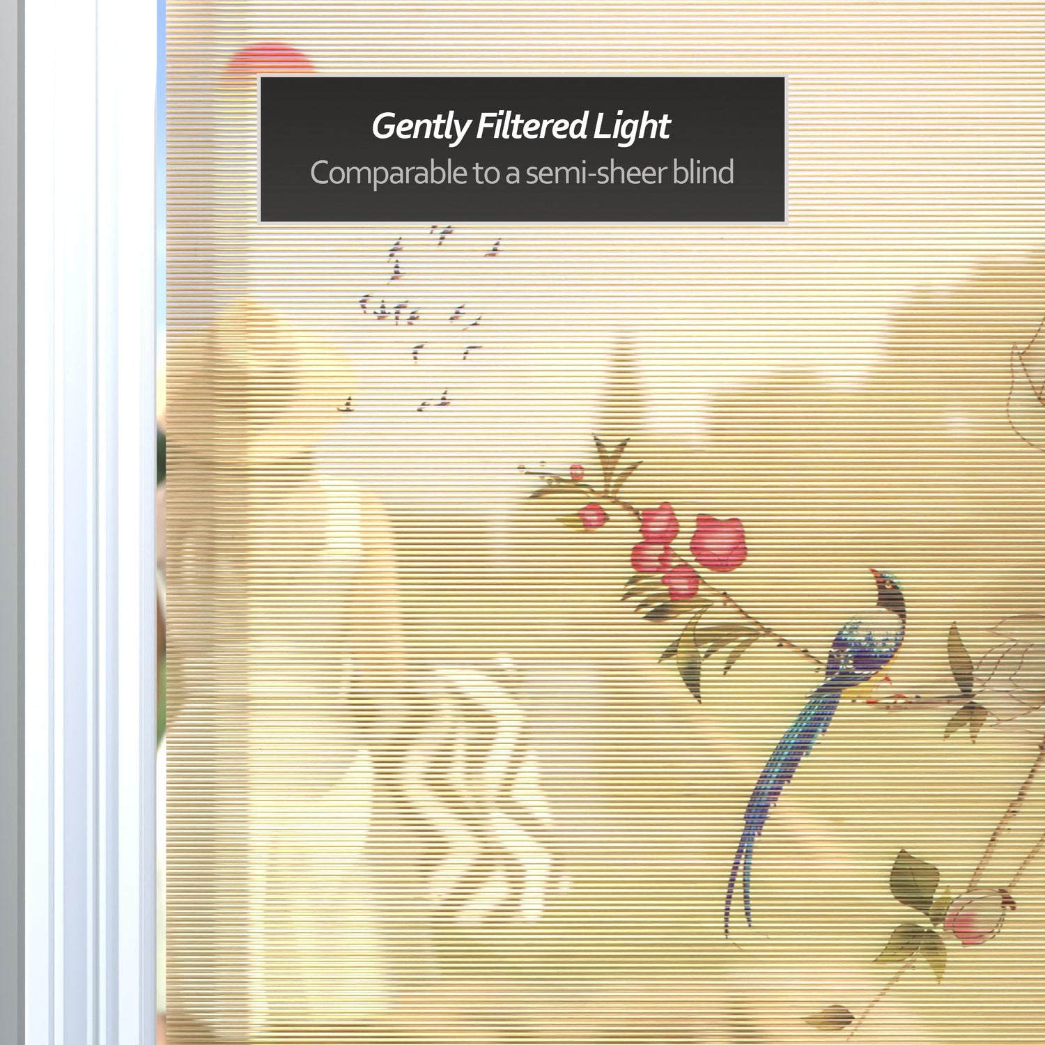 - Diffused Sunlight: Enjoy diffused light as these blinds allow filtered sunlight to gently illuminate your space, reducing glare while maintaining visibility. Comparable to a semi-sheer blind.