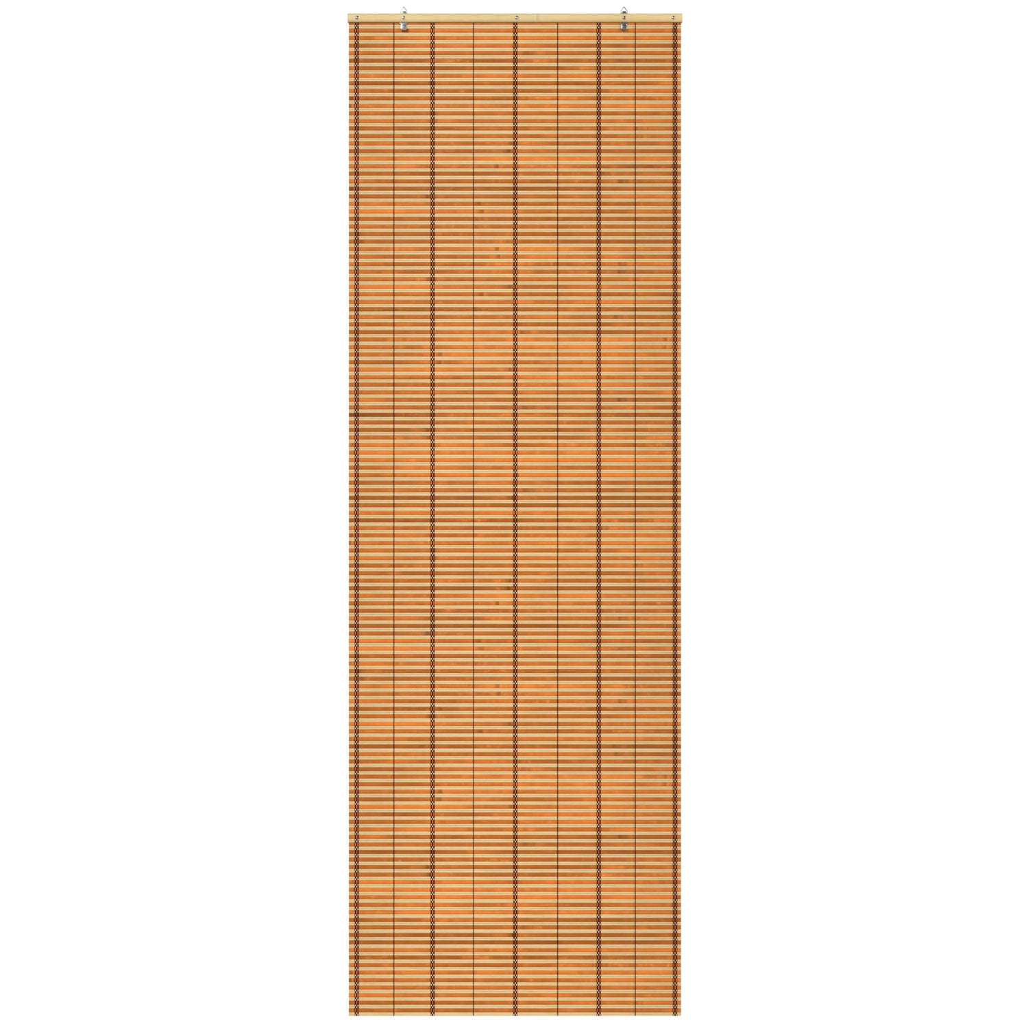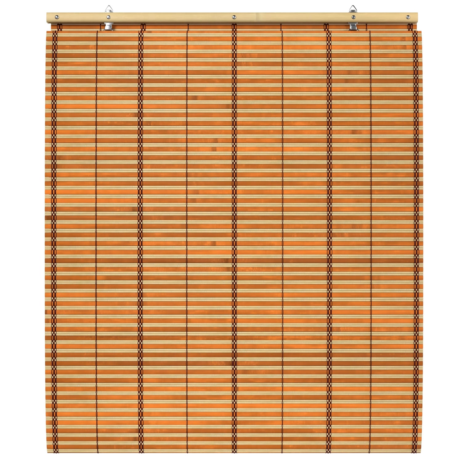 Details: This fashionable cordless window shade is constructed from all-natural, woven bamboo. The hued bamboo has an earthy, organic appearance that complements a wide variety of interior decorating styles.
