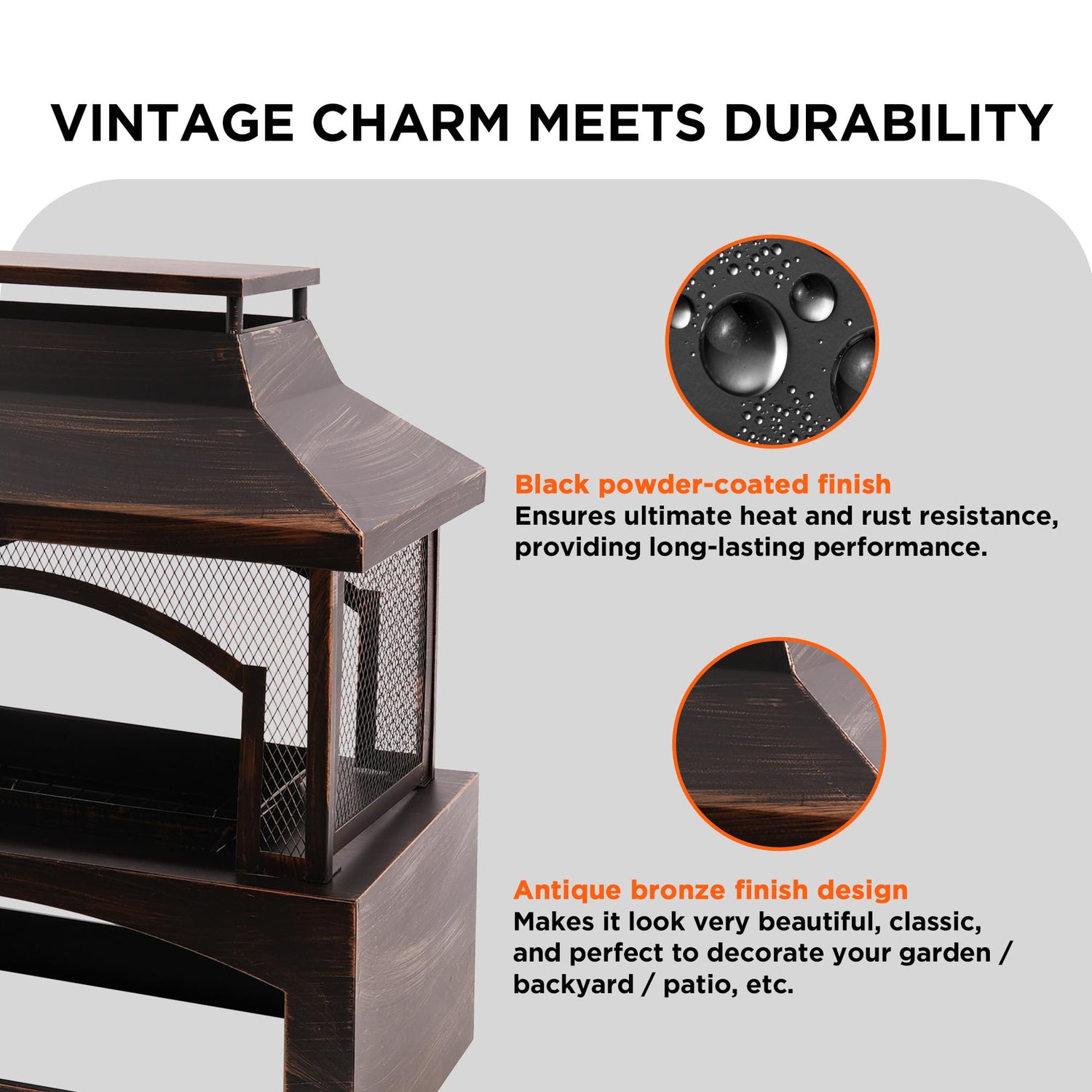 Red Mountain Valley 37in Outdoor Wood Burning Fireplace,2-in-1 Large Fire Pit with Log Grate and Poker for Outside,Outdoor Chimney Fireplace with Firewood Racks Storage for Patio, Garden and Backyard