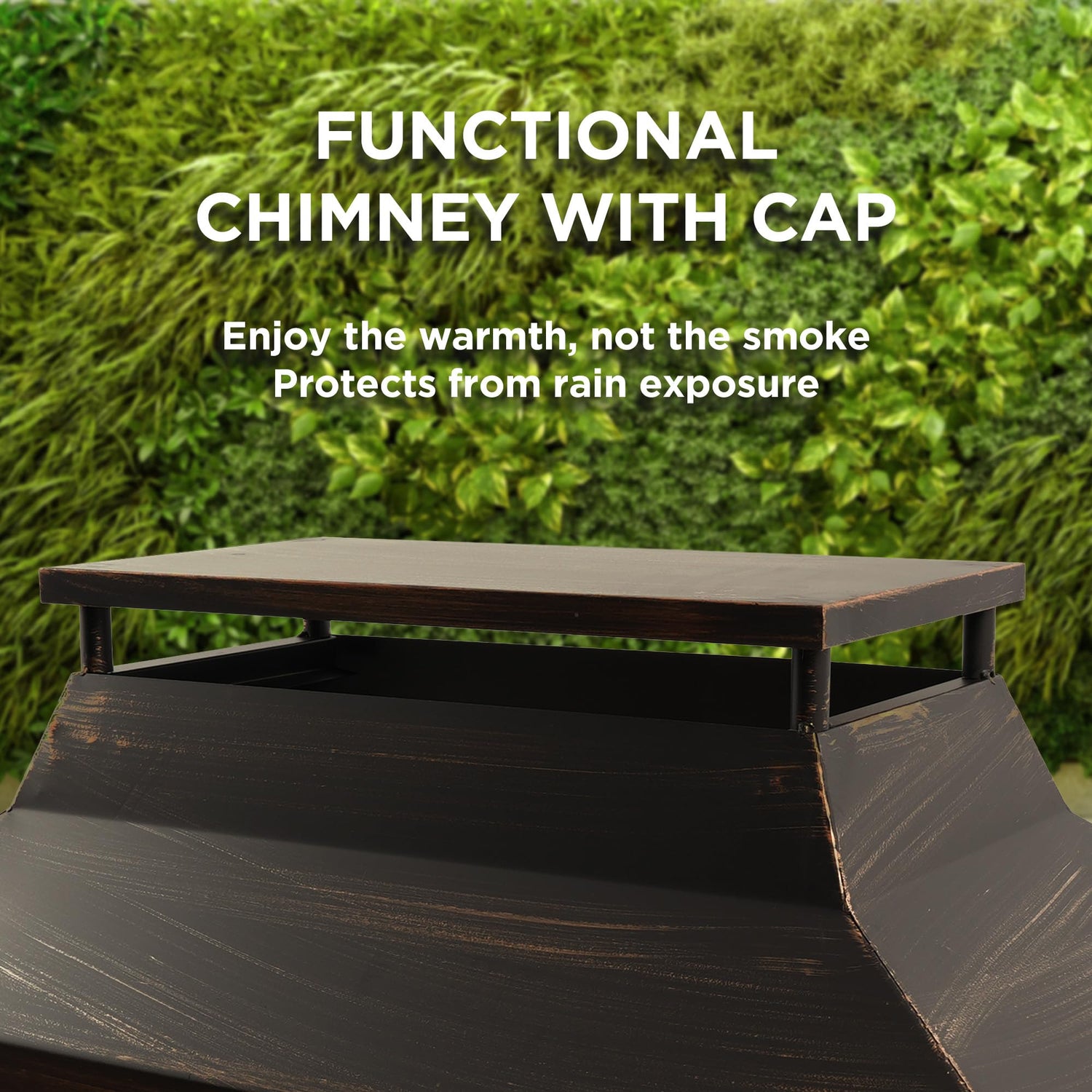 - Practical Log Rack : Outdoor fireplace for patio includes a stylish log rack on the bottom for easy and organized firewood storage.