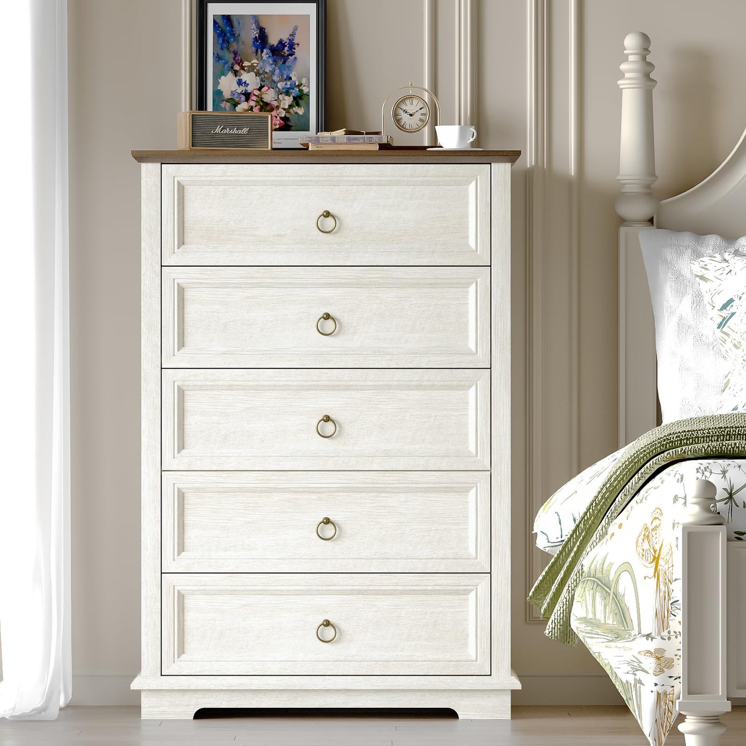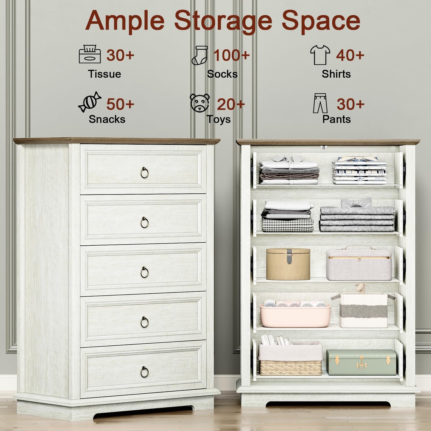 REDAYFUR Chest of Drawers, Double Anti-tip, 5 Drawers Dresser, Dresser Organizer for Bedroom, Living Room, Hallway, White