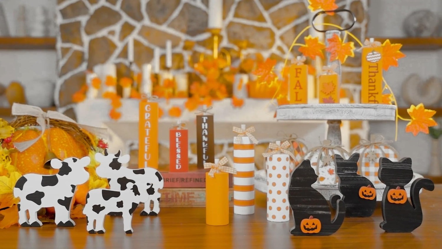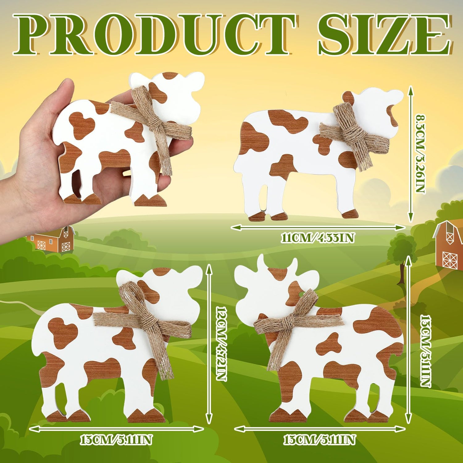 Redbaker 3 Pieces Farmhouse Tiered Tray Decor Cow Tabletop Decor Rustic Wooden Block Cow Centerpieces Decorations Wooden Tray Decor for Home Kitchen Shelf Decor