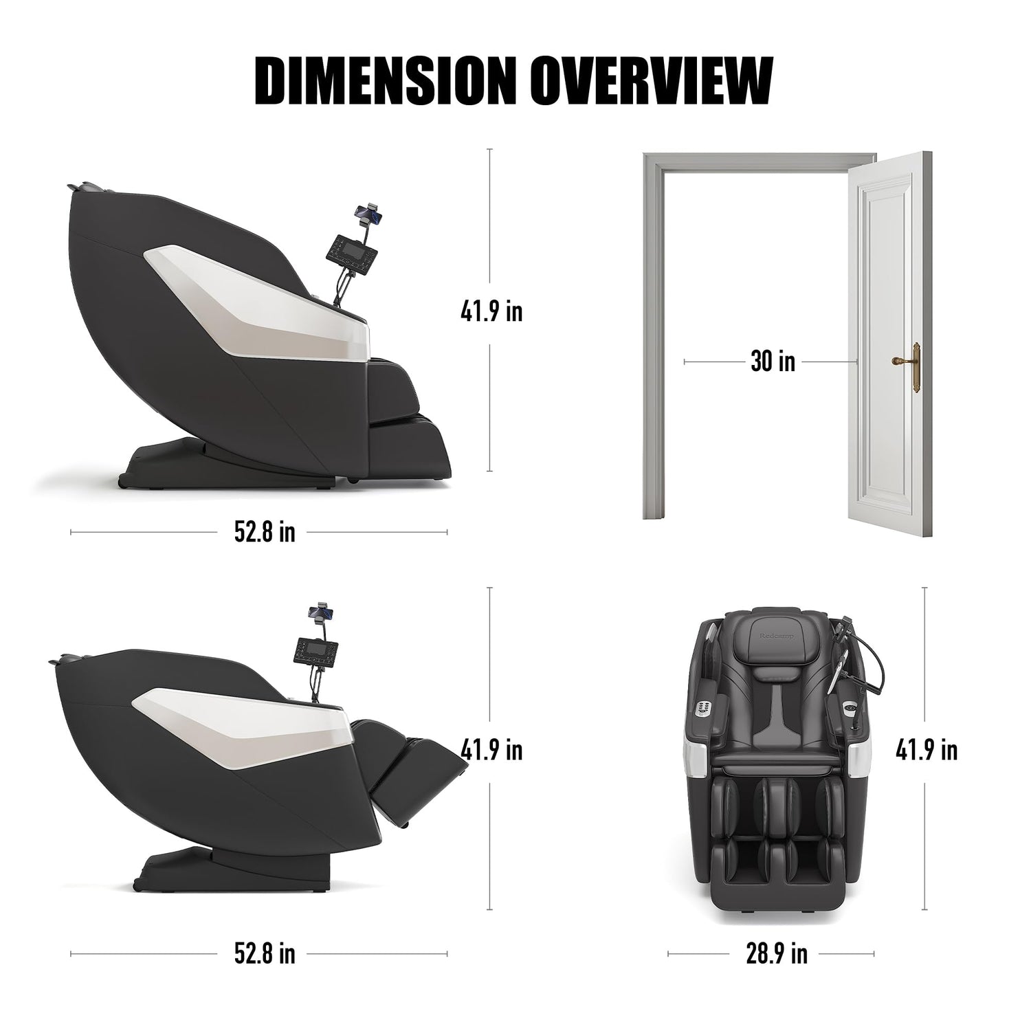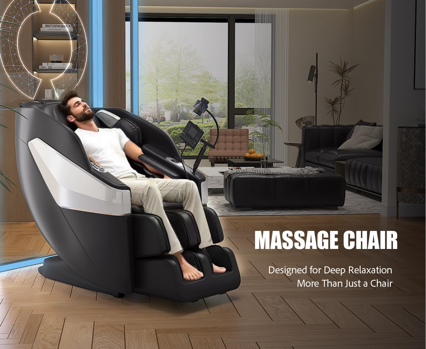 - Smart Controls & Convenient Features: Features body scan technology, LED remote, shortcut buttons on the armrest, wireless phone charging, a built-in phone holder, and calf extension for personalized comfort and ease of use.