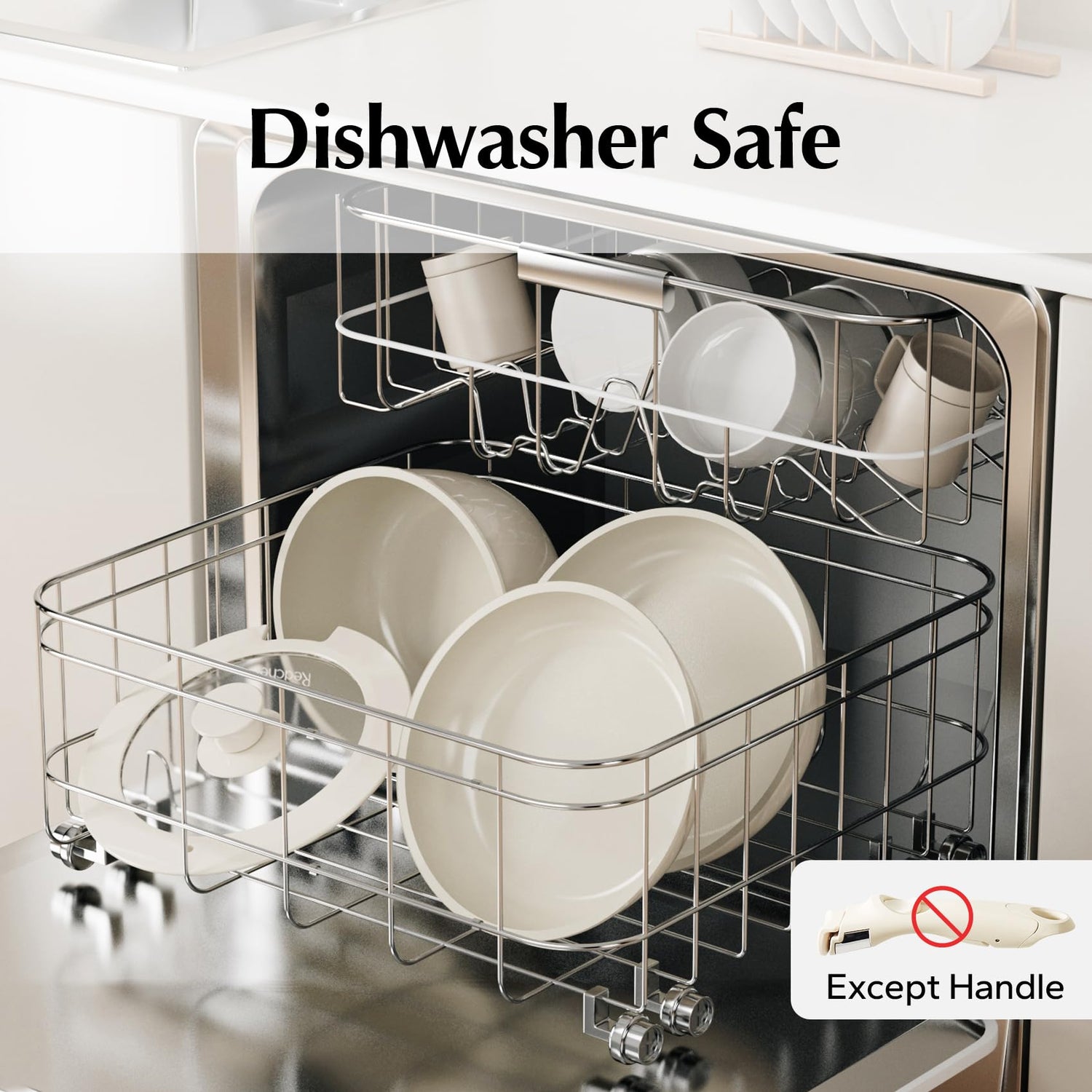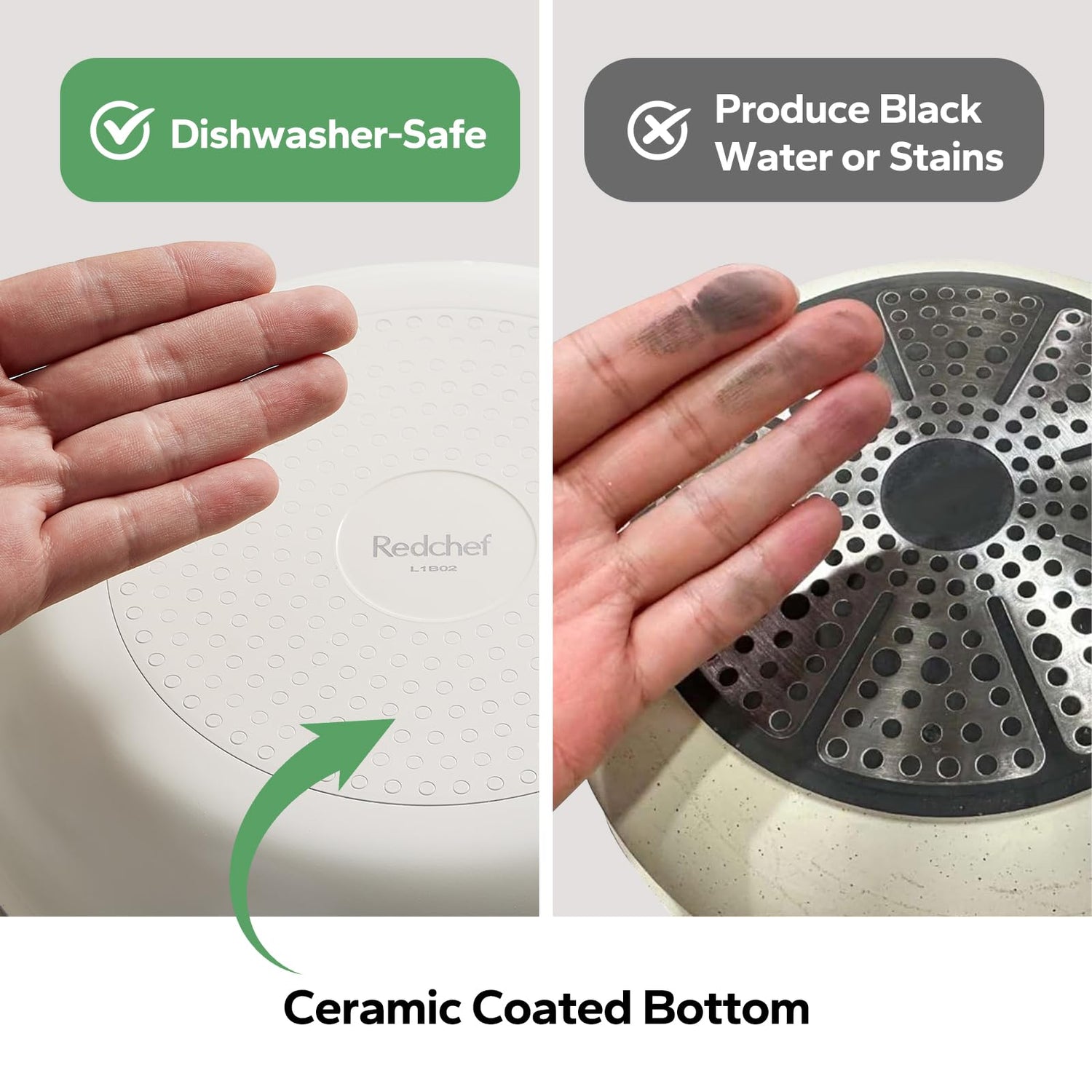 - Natural Dual-Sided Ceramic Coating: Redchef ceramic pots and pans set boasts an innovative dual-sided ceramic coating, inside and out; This advanced ceramic finish ensures effortless cleaning, allowing you to effortlessly wash both the interior and exterior of your pots and pans