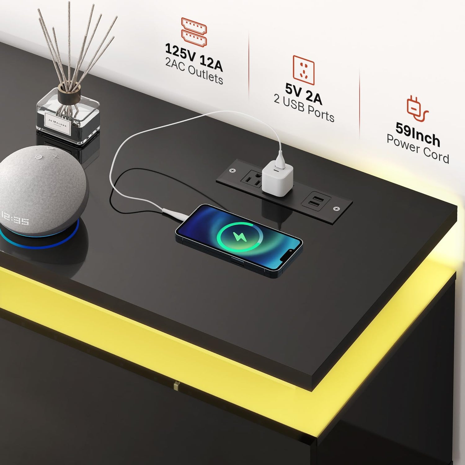 - 【2AC Outlet With USB Port】This TV cabinet is specifically designed with 2 AC outlets and 2 USB ports, one of which can be used to connect LED lights. The outlet design allows us to conveniently charge our phones and place other small items such as smart speakers on top, making it perfect for meeting our daily electrical needs.