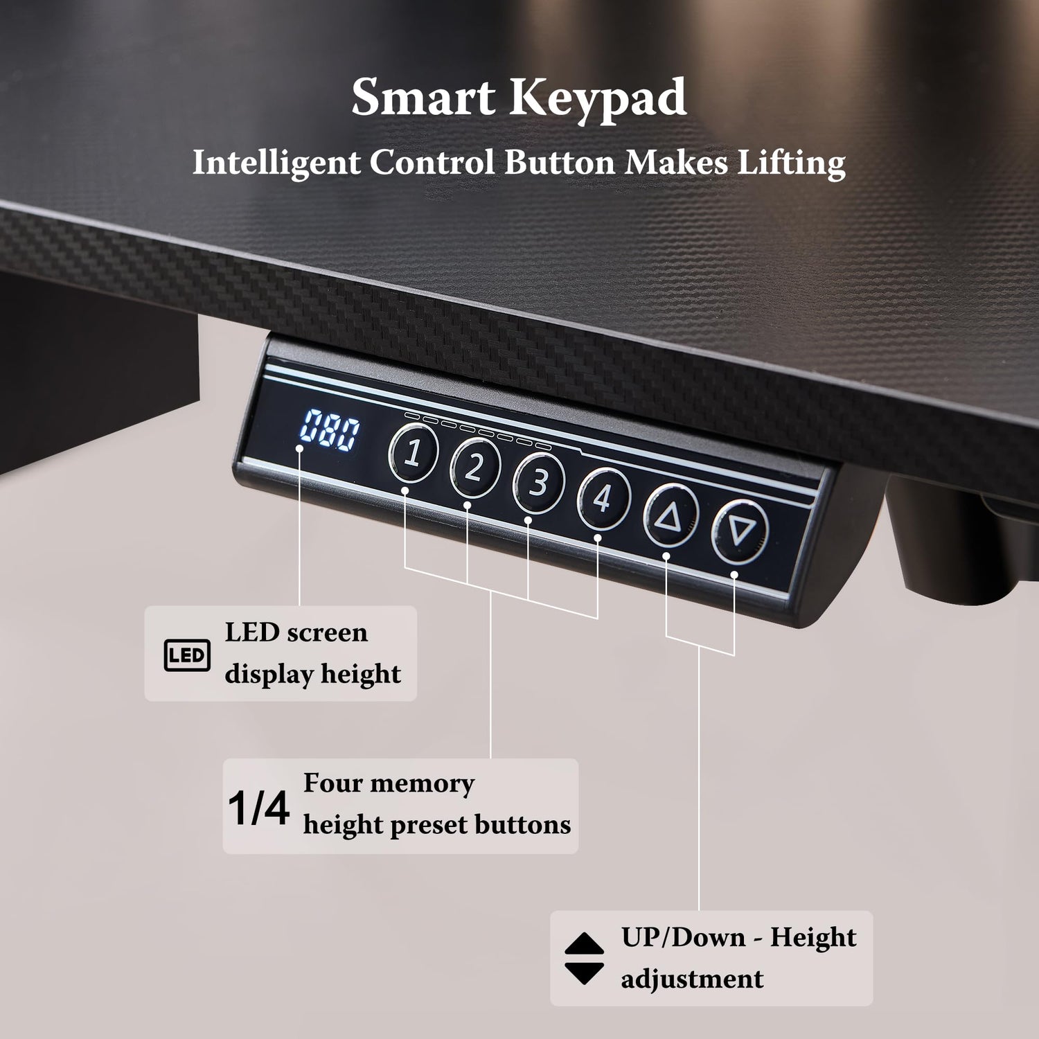 - Height Adjustable: The electric standing desk feature allows users to easily adjust the height to their desired level with just a simple operation.Whether you want to sit or stand while working or gaming,this desk can meet your needs perfectly, helping to improve posture and reduce the risk of back and neck pain caused by long hours of sitting.