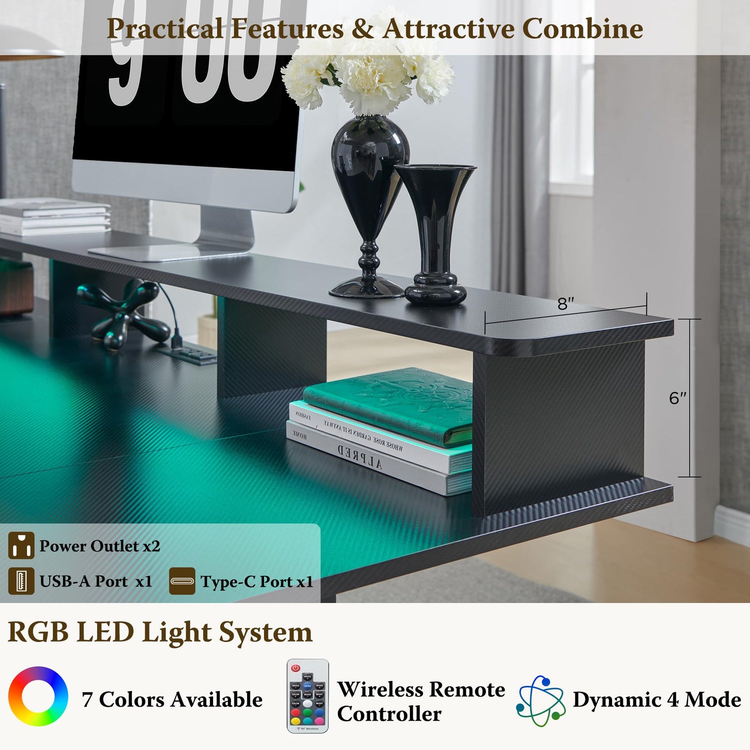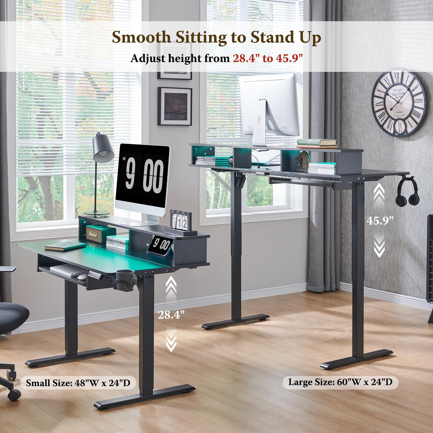 RedLemon 60Inch Gaming Desk, Electric Standing Desk with Height Adjustable, Power Outlets, LED Lights, Keyboard Tray, and Monitor Shelf, Stand Up Computer, Black