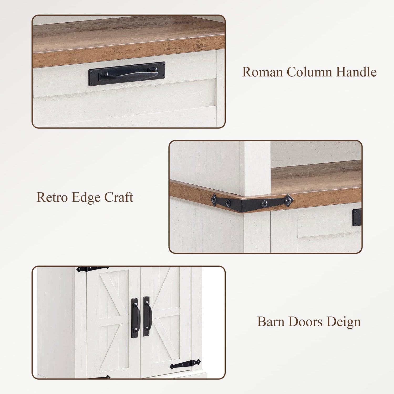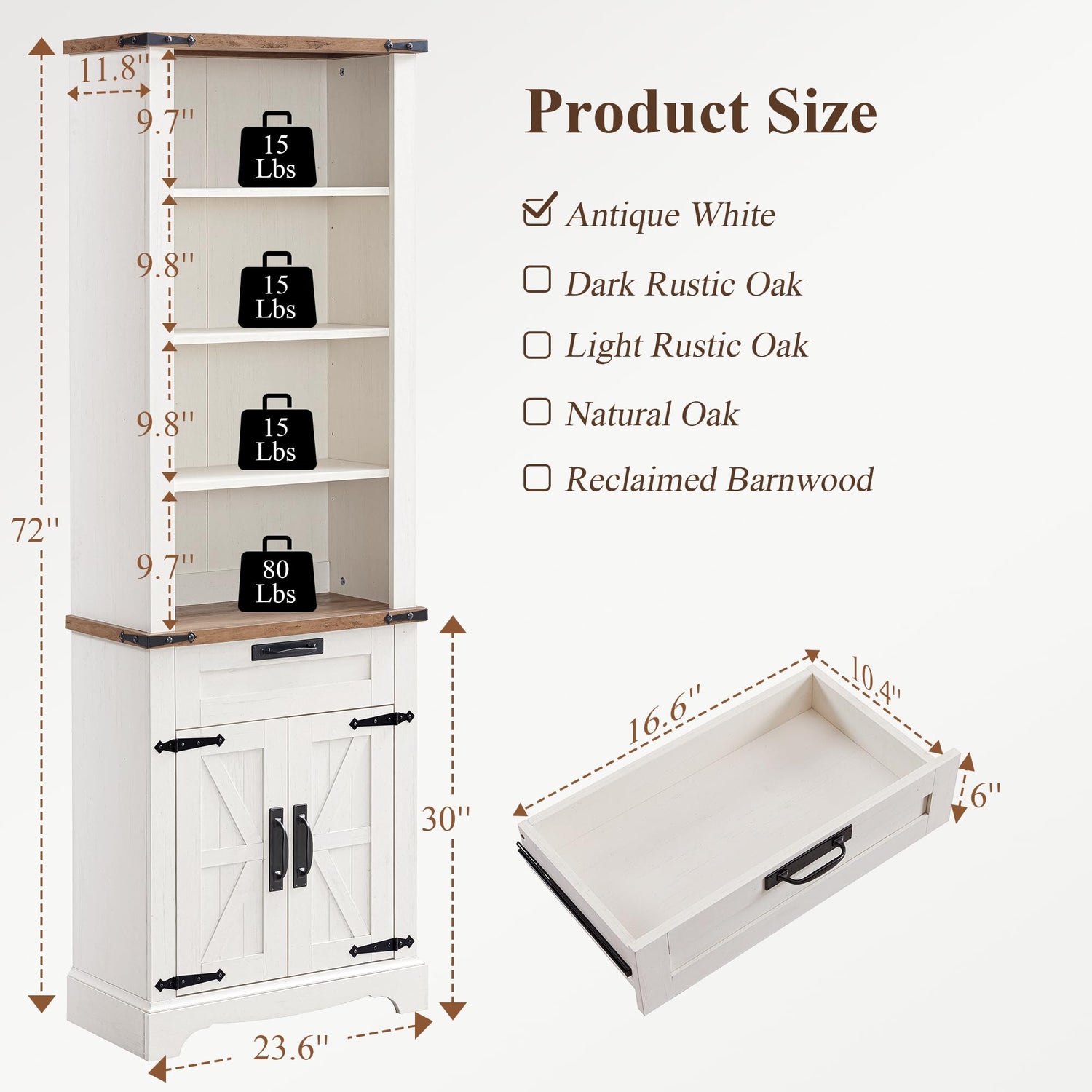 RedLemon Bookshelf with Storage Cabinet, 72" Tall Farmhouse Bookcase with Adjustable Shelves and Barn Door, 4 Tier Office Wood Bookshelf with Drawer for Office Library Living Room (Antuique White)