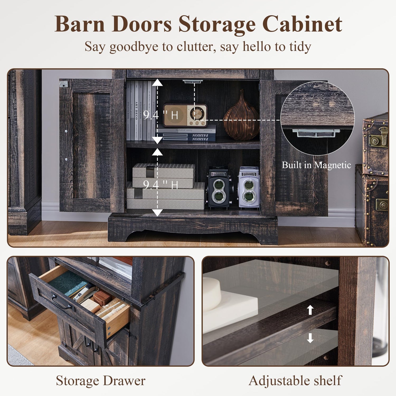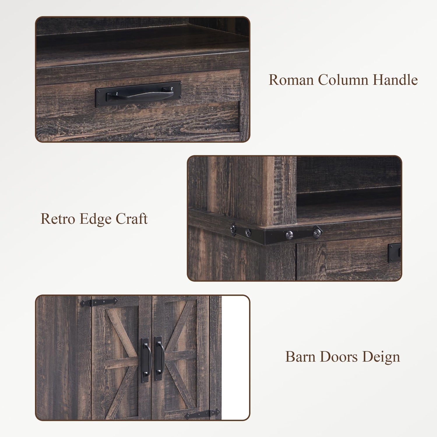RedLemon 72" Tall Dark Rustic Oak Bookshelf with Storage Cabinet and Adjustable Shelves