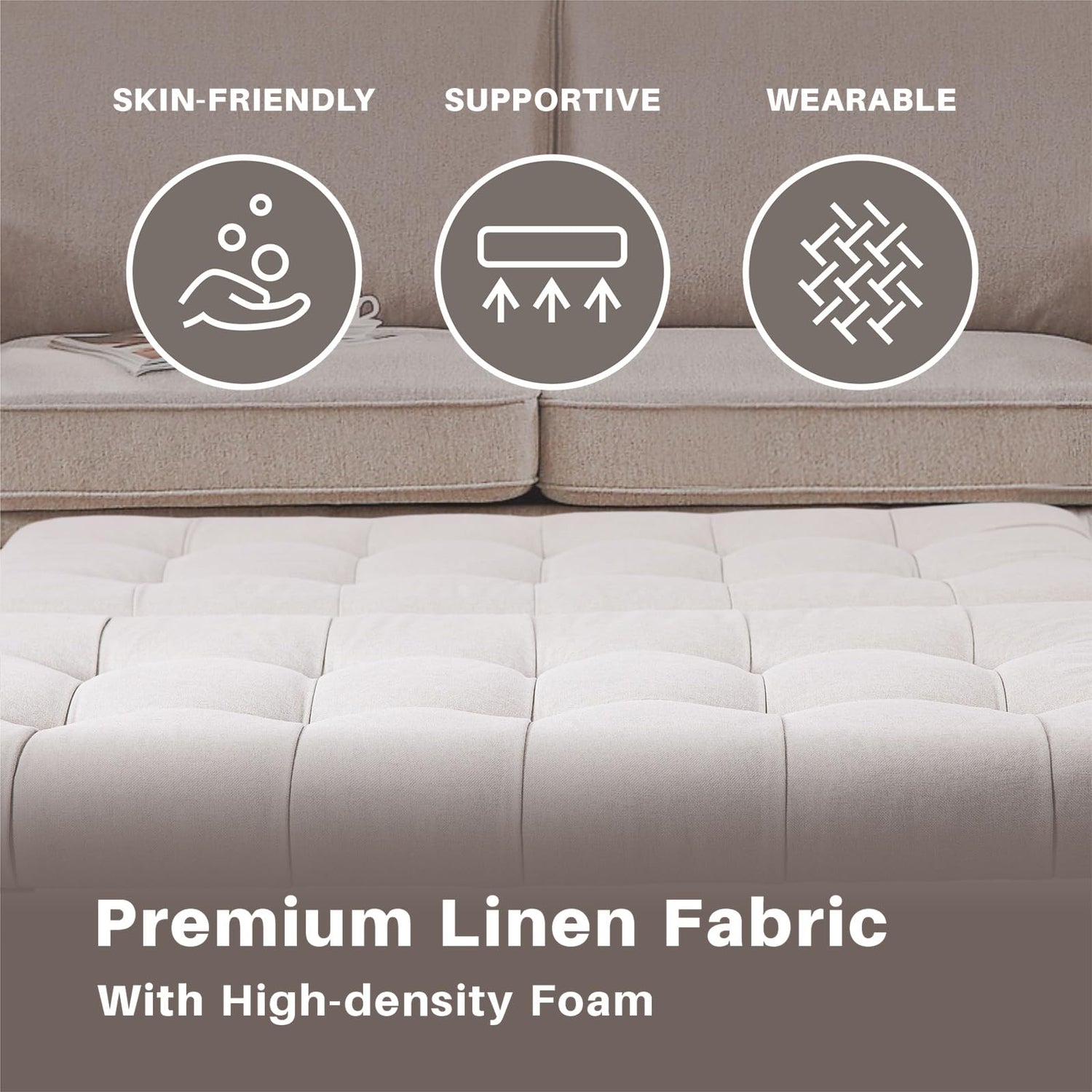 - SIMPLE AND STYLISH: 35 Inch tufted storage ottoman designed with classic tufted buttons, skin-friendly linen fabric and high-density sponge, making the home warm and comfortable. It is a perfect choice for living rooms, bedrooms, study rooms and leisure areas