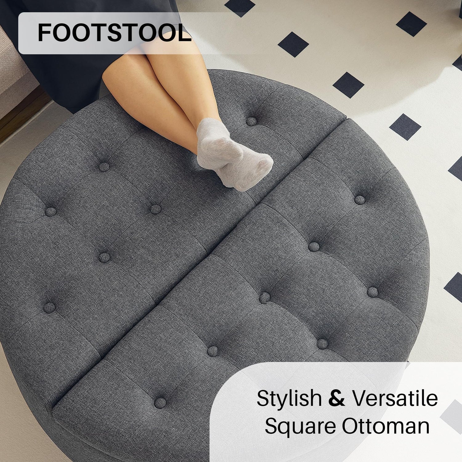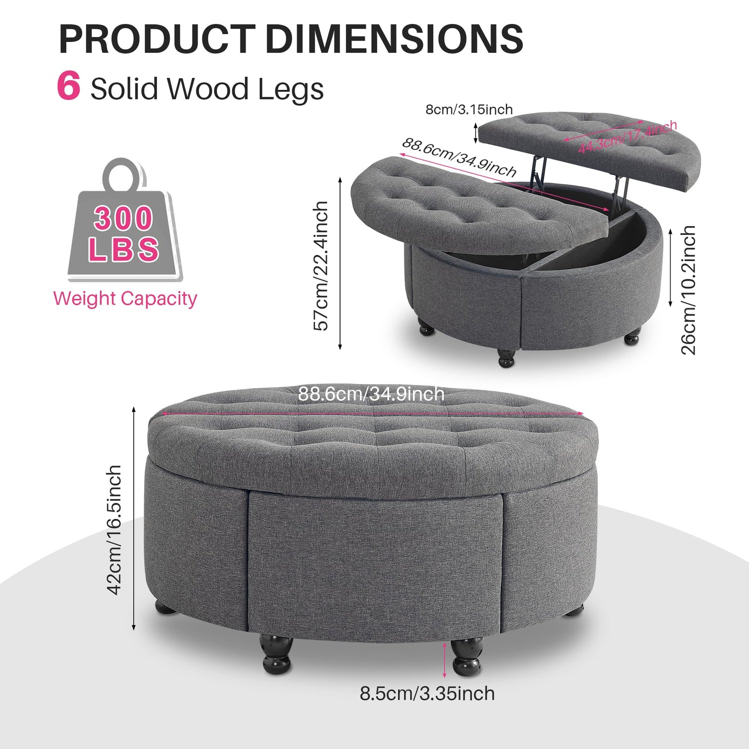 Redlife 35" Wide Round Ottoman with Storage, Storage Ottoman Coffee Table, Tufted Round Ottoman Coffee Table Linen Fabric Round Coffee Table Ottoman with Storage (Dark Grey)