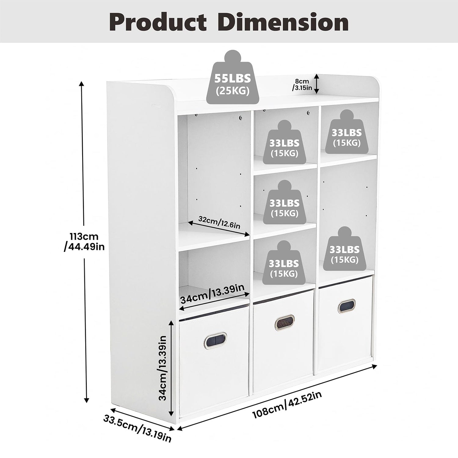 - Ample Storage Space: Designed with 7 open cubes in various sizes along with 3 storage bins, the cube bookshelf provides ample space to meet your diverse storage needs. It helps keep your room or office organized, reducing clutter and creating a more comfortable, tidy environment